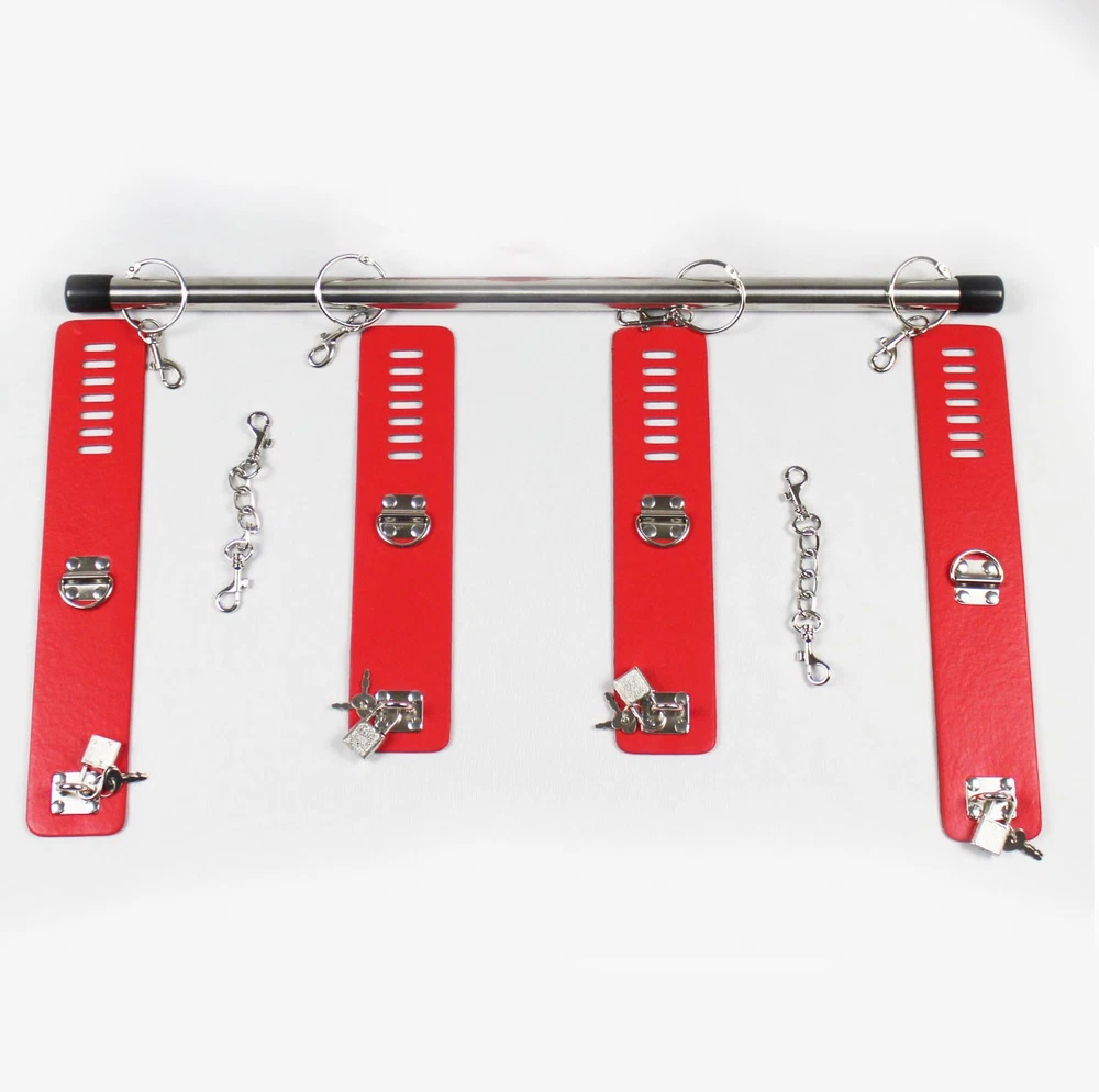 Features: Condition: 100% Brand new and high quality Material: PU leather + Metal Color: Black/Red bar Length: 55cm/21.65inches Handcuff: 25cm * 5.5cm Ankle cuff: 30cm * 5.5cm Package Included: 1pcs Spreader Bar with handcuff& anklecuff Note: The real color of the item may be slightly different from the pictures shown on website caused by many factors such as brightness of your monitor and light brightness.