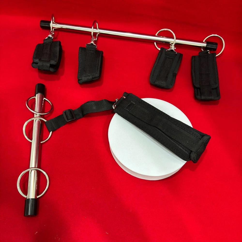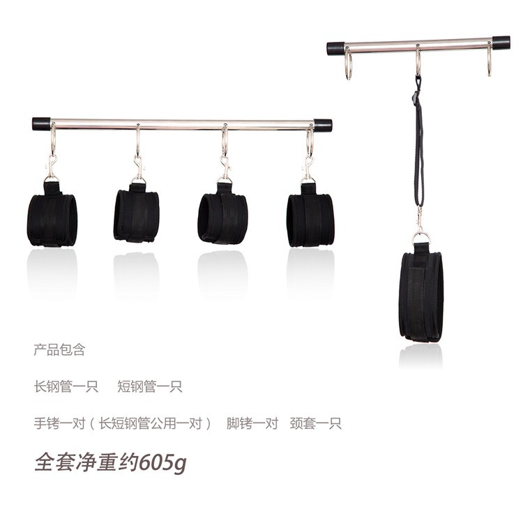 100% Brand New and high quality Theme: Fantasy Game Dubble Open Leg Bar Color: Black Material: Nylon + Metal Size: Long bar :about 49cm,Short bar:about 31cm Handcuff: 37cm*6.5cm Ankle Cuff: 42.5cm*6.5cm Neck Collar: 61cm*6.2cm Package Contents: 2 x Steel Bar, 5 x Strap Discreet packaging