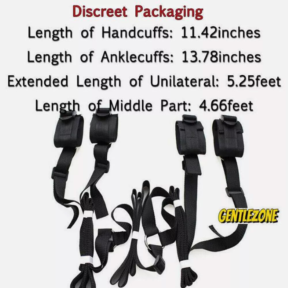 Procuct Information --Discreet, Lightweight and Very Easy To Install --Protable And Durable --Detachable Restraint Cuffs --Suitable most Shape and Size Beds --Just slide the restraint straps the mattress for an instant bondage playground --Nylon Straps --Adjustable wrist cuffs and ankle cuffs for a perfect fit. Package Include: 4 x Restraint belts 1 pair of handcuffs 1 pair of foot cuffs Friendly Tips 1 Inch=2.54 CM; 1 CM=0.39 Inch. The size is measured by hands, please allow minor error of measurement. Photo color might be a little different from the actual product due to color display of different monitors. The real color of the item may be slightly different from the pictures shown on website caused by many factors such as brightness of your monitor and light brightness. Shipping D iscreet Package Y our order will be securely and discreetly packaged in a plain mail bag or cardboard box. There will be no indication to the contents of the parcel or where it has been dispatched from. Private Listing This is a private listing so your purchase is completely discreet and no one can see what you have purchased from us. Contact Us If you cannot find answers to your questions here, please feel free to contact us. Please understand if you contact cut of our business hours, we will be not able to replay un we get back into the office the next business day.
