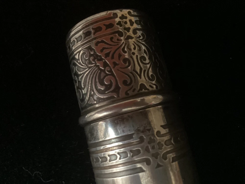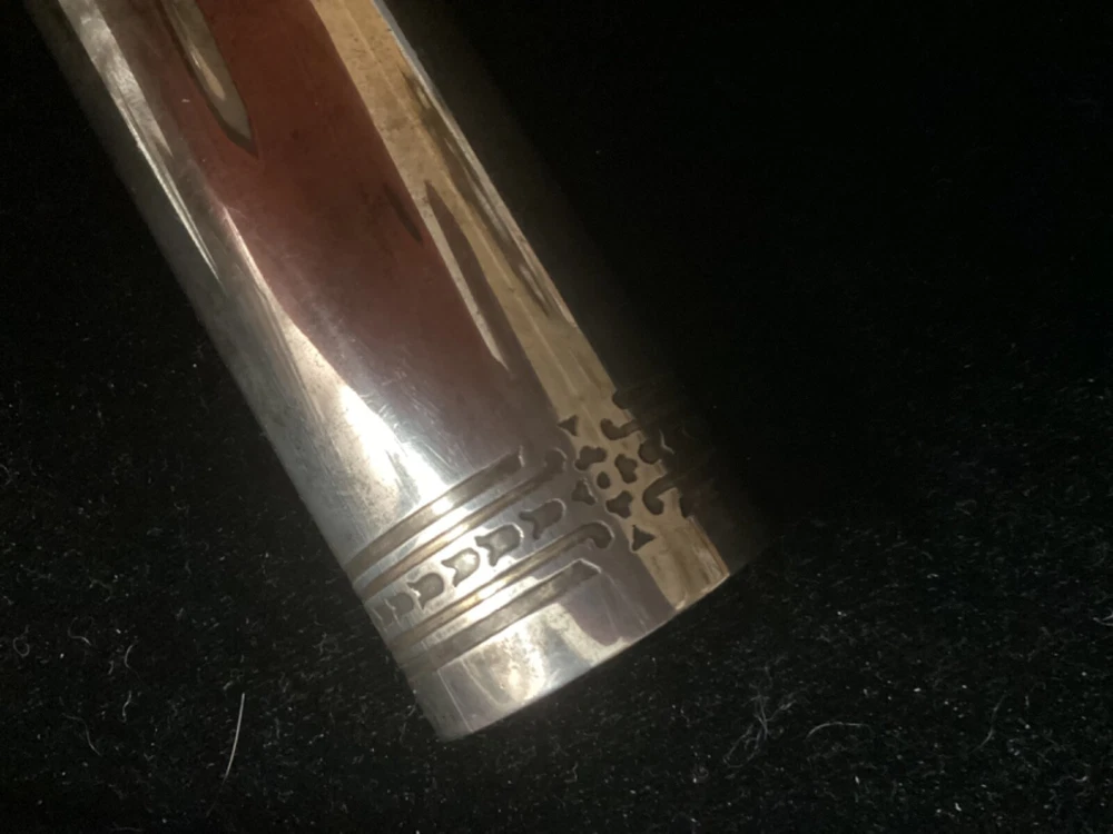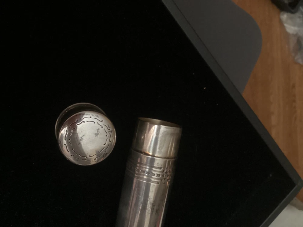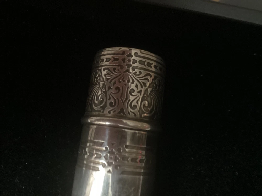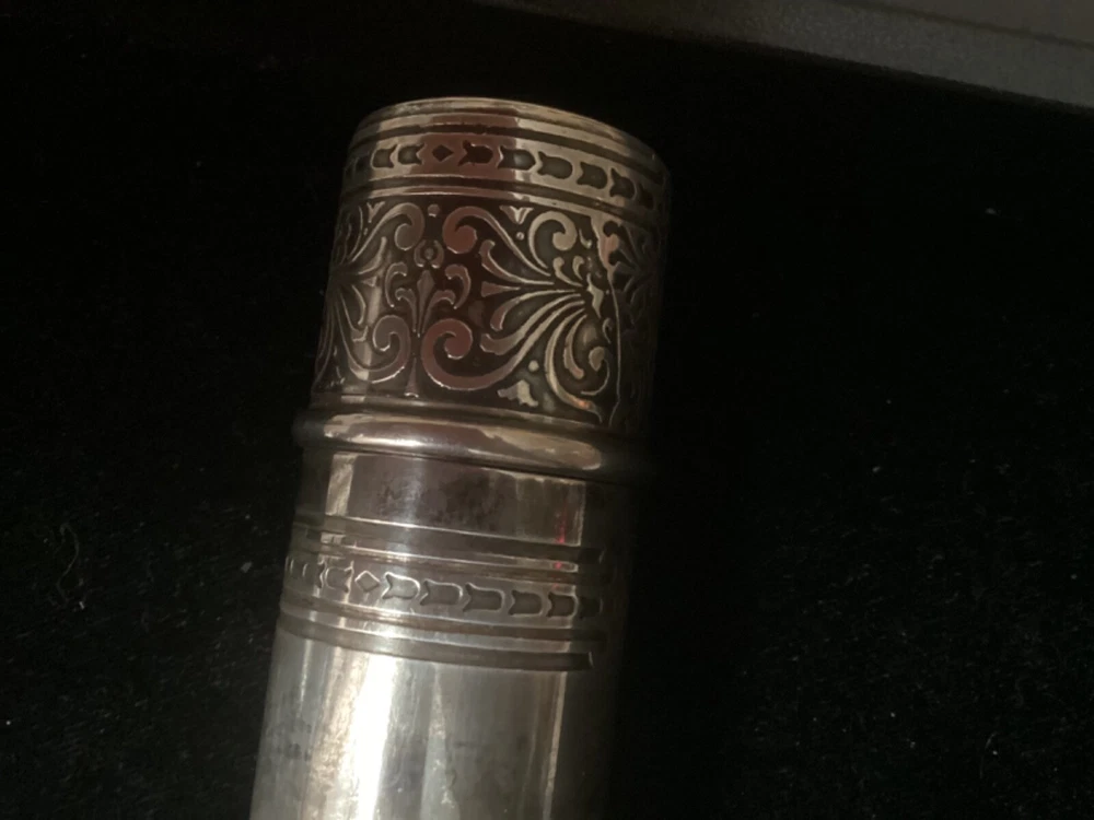 This listing is for a beautiful, large 925 Sterling silver cigar tube, made some time between 1910 and 1947 by Tiffany & Co. The epitome of elegance, it is embossed with a beautiful pattern on the entire cap, and around the borders of the tube itself. This piece is quite substantial. On my postage scale, it weighs 6.4 ounces. It measures 6 1/2” long with the cap on, and is about 1.5” in diameter. It is in excellent condition with no dings or scratches. I chose not to clean it with any type of silver polish—just buffed it up a little bit with a silver cloth. I rotated the tube as I was taking photos so that you could see all sides Please ask any questions you may have before making a purchase, as I do not accept returns. Thanks for looking!!