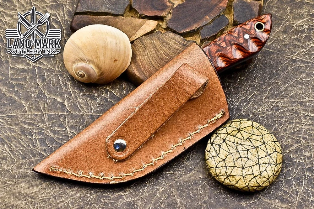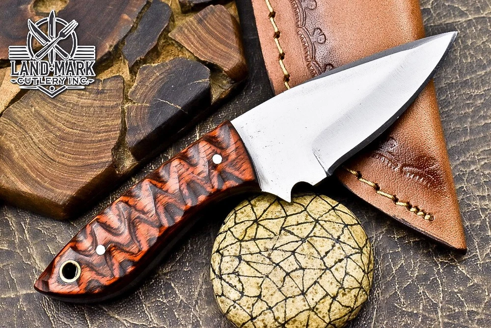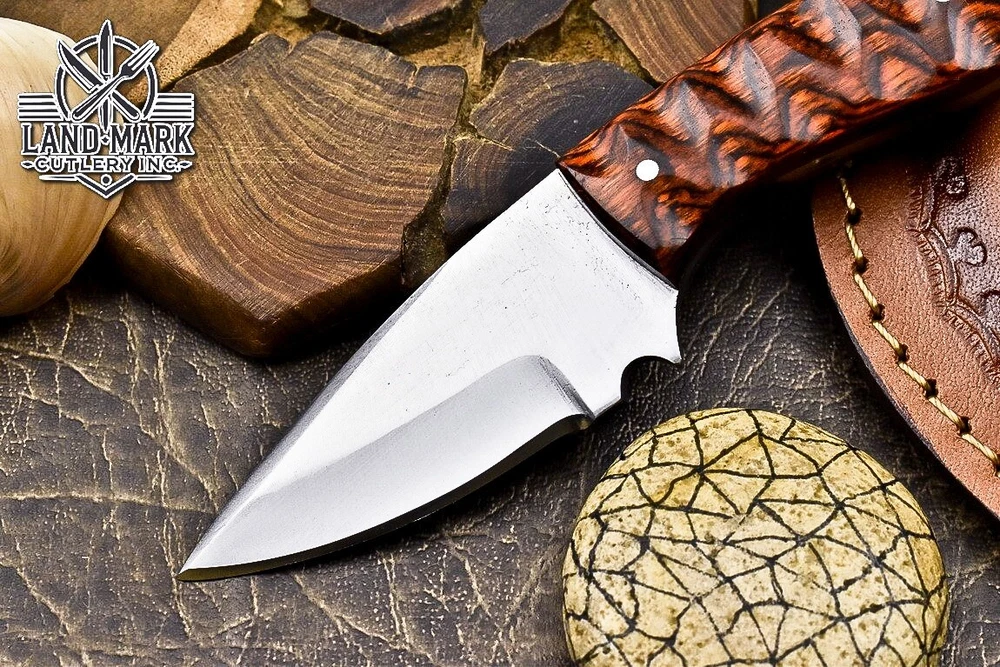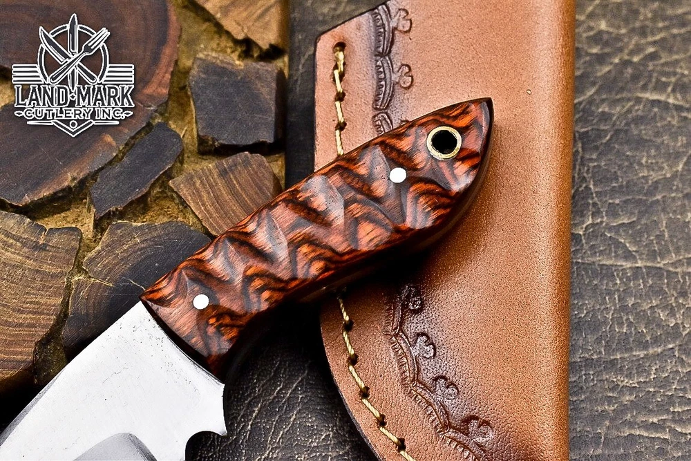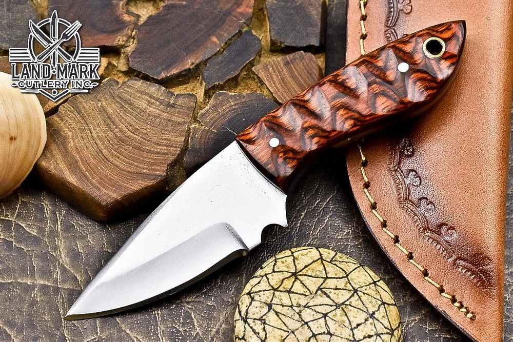 Custom Hand Made D2 STEEL HUNTING KNIFE WITH PAKKA WOOD HANDLE We offer a shipping discount for More then one purchased . And discount will be apply on combine invoice, Discount will not apply on separate payment. ITEM DETAILS OVER ALL LENGTH 8.0 inches long (Approx) HANDLE LENGTH 4.0 inches long (Approx) BLADE LENGTH 4.0 inches long (Approx) BLADE HARDNESS 58-60 HRC Which Holds The Sharp Edge For Long Time. HANDLE PAKKA WOOD COVER LEATHER SHEATH This Awesome custom made KNIFE has a nice hand forged with the combination of 4340 & 1080 steel. HOW OUR DAMASCUS IS MADE: All our Damascus is real and not just an acid etch. Damascus is a mixture of 1080HC and 4340 nickel carbon. You heat them up together and then fold the bar over and over to get the desired layers, ours are 396 layers. Then you burn the blade in acid, and it turns the nickel satin color and the high carbon turns blackish gray. This is how the layers are exposed to show the layers of the new steel created coined "Damascus". All Damascus is acid etched to show the layers. If you high polish the metal it will be shinny satin like all steels. Only after you burn the sides of the blade with acid do you see the layers of the two steels. Makes sense? After we make our knives we high polish the handles and put an edge on the blade. The high polishing buffs off the acid burned layer of the handle, and the blade edge is sharpened and the acid burned edge becomes satin. You can re-burn the tang of the blade near the handles and the edge of the blade and it will show the layers once more. All our knives are hand made, durable and unique ***** YOU WILL RECEIVED THE SAME KNIFE Qality Standards Our Damascus blades are made from high quality non-stainless steels which rival or exceed any Damascus blade made from the 10 series with 4340. Our Damascus combination has taken years to perfect and has been tested under a variety of application which will offer professional performance in categories of toughness, strength (lateral stress) and edge honing and holding ability. In a 5 spot Rockwell test our blades will average near or close to 58 which offers a perfect balances between its toughness and strength.Our blades due to carbon content need to be regularly treated with wax and/or 3 in 1 oil to maintain its superior quality. Questions if you have any question feel free to send us message we aim to answer all questions within 24 hours Feedback If you are not satisfied with our service please contact us before leaving any negative or natural feedback. We will resolve all issues as quickly as possible. Disclaimer We are not responsible for any injuries associated with the use of our tools. Our products are intended for legal use only by responsible buyers. Therefore, we will not sell our products to anyone under the age of 18. Before bidding please check your country laws as some countries Custom don't allow this. If your purchase is held by Custom Authorities in your country/State we will not be responsible for that and no refund will be issued Shipping We offer a 20% shipping discount for More then one purchased . And discount will be apply on combine invoice, Discount will not apply on separate payment We ship within 24 hours after receiving complete payment but this can be delayed due to week ends or Governments and Religious Festivals . . This is beyond our control and we apologize for this inconvenience. Precautions Our Tools are very sharp so open and use them very carefully We are not responsible for any injuries associated with the use of our tools Tips to Care knife 1. NEVER STORE YOUR KNIFE FOR LONG TIME IN LEATHER SHEATH. 2. LEATHER CAN ABSORB WATER, WHICH WILL RUST THE KNIFE. 3. ALWAYS CLEAN THE BLADE AFTER USING WITH OIL OR WAX