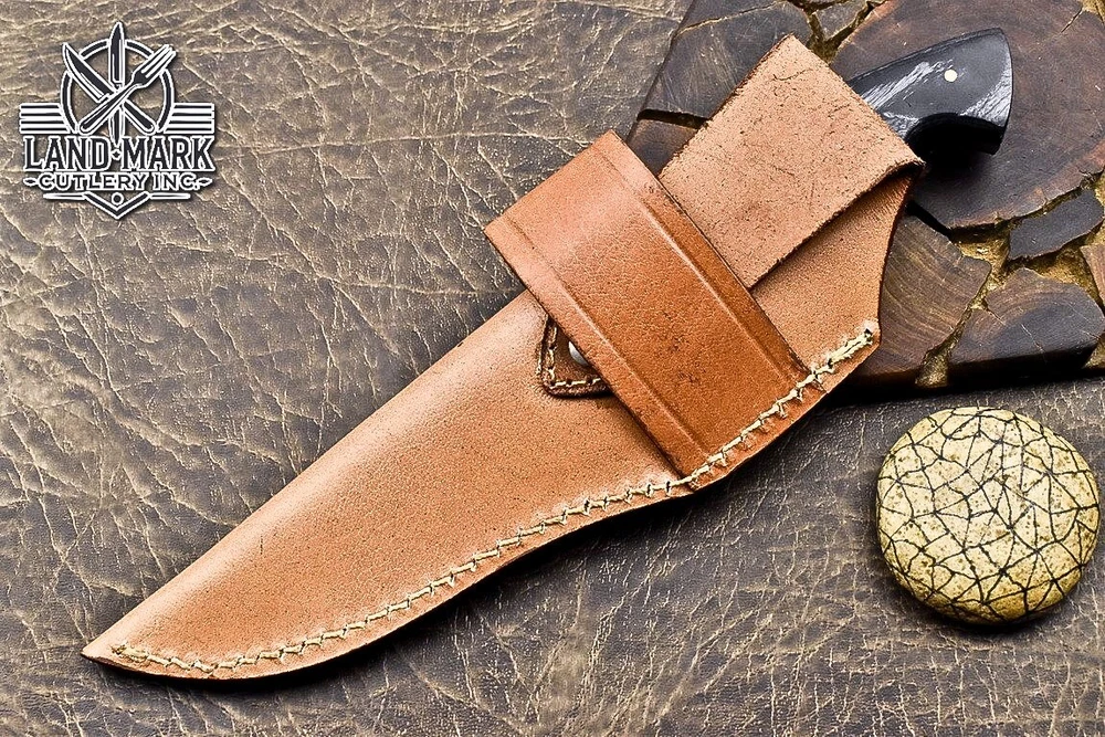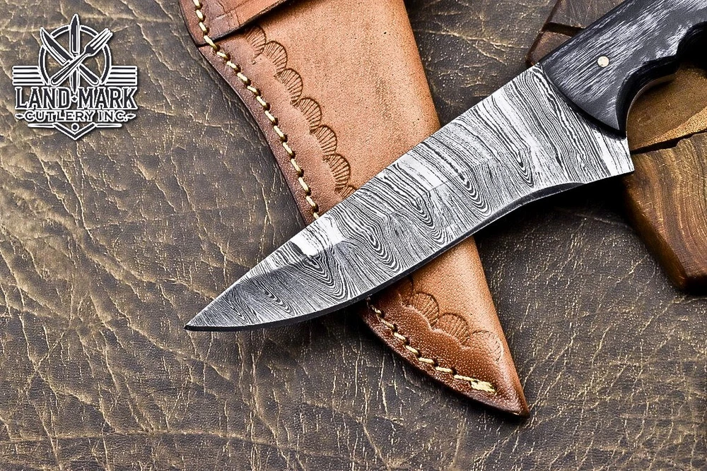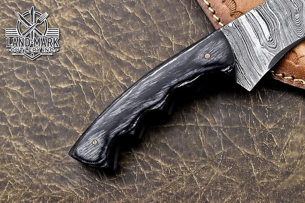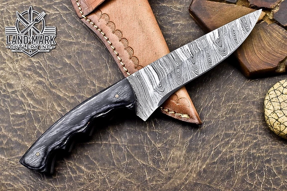 Custom Hand Made DAMASCUS STEEL HUNTING KNIFE WITH BLACK HANDLE We offer a shipping discount for More then one purchased . And discount will be apply on combine invoice, Discount will not apply on separate payment. ITEM DETAILS OVER ALL LENGTH 8.0 inches long (Approx) HANDLE LENGTH 4.0 inches long (Approx) BLADE LENGTH 4.0 inches long (Approx) BLADE HARDNESS 58-60 HRC Which Holds The Sharp Edge For Long Time. HANDLE BLACK HANDLE COVER LEATHER SHEATH This Awesome custom made KNIFE has a nice hand forged with the combination of 4340 & 1080 steel. HOW OUR DAMASCUS IS MADE: All our Damascus is real and not just an acid etch. Damascus is a mixture of 1080HC and 4340 nickel carbon. You heat them up together and then fold the bar over and over to get the desired layers, ours are 396 layers. Then you burn the blade in acid, and it turns the nickel satin color and the high carbon turns blackish gray. This is how the layers are exposed to show the layers of the new steel created coined "Damascus". All Damascus is acid etched to show the layers. If you high polish the metal it will be shinny satin like all steels. Only after you burn the sides of the blade with acid do you see the layers of the two steels. Makes sense? After we make our knives we high polish the handles and put an edge on the blade. The high polishing buffs off the acid burned layer of the handle, and the blade edge is sharpened and the acid burned edge becomes satin. You can re-burn the tang of the blade near the handles and the edge of the blade and it will show the layers once more. All our knives are hand made, durable and unique ***** YOU WILL RECEIVED THE SAME KNIFE Qality Standards Our Damascus blades are made from high quality non-stainless steels which rival or exceed any Damascus blade made from the 10 series with 4340. Our Damascus combination has taken years to perfect and has been tested under a variety of application which will offer professional performance in categories of toughness, strength (lateral stress) and edge honing and holding ability. In a 5 spot Rockwell test our blades will average near or close to 58 which offers a perfect balances between its toughness and strength.Our blades due to carbon content need to be regularly treated with wax and/or 3 in 1 oil to maintain its superior quality. Questions if you have any question feel free to send us message we aim to answer all questions within 24 hours Feedback If you are not satisfied with our service please contact us before leaving any negative or natural feedback. We will resolve all issues as quickly as possible. Disclaimer We are not responsible for any injuries associated with the use of our tools. Our products are intended for legal use only by responsible buyers. Therefore, we will not sell our products to anyone under the age of 18. Before bidding please check your country laws as some countries Custom don't allow this. If your purchase is held by Custom Authorities in your country/State we will not be responsible for that and no refund will be issued Shipping We offer a 20% shipping discount for More then one purchased . And discount will be apply on combine invoice, Discount will not apply on separate payment We ship within 24 hours after receiving complete payment but this can be delayed due to week ends or Governments and Religious Festivals . . This is beyond our control and we apologize for this inconvenience. Precautions Our Tools are very sharp so open and use them very carefully We are not responsible for any injuries associated with the use of our tools Tips to Care knife 1. NEVER STORE YOUR KNIFE FOR LONG TIME IN LEATHER SHEATH. 2. LEATHER CAN ABSORB WATER, WHICH WILL RUST THE KNIFE. 3. ALWAYS CLEAN THE BLADE AFTER USING WITH OIL OR WAX