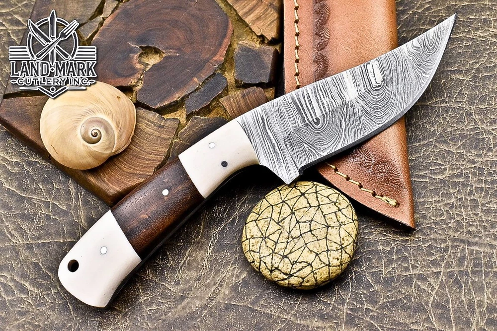 Custom Hand Made DAMASCUS STEEL HUNTING KNIFE WITH WOOD & SHEET HANDLE We offer a shipping discount for More then one purchased . And discount will be apply on combine invoice, Discount will not apply on separate payment. ITEM DETAILS OVER ALL LENGTH 8.0 inches long (Approx) HANDLE LENGTH 4.0 inches long (Approx) BLADE LENGTH 4.0 inches long (Approx) BLADE HARDNESS 58-60 HRC Which Holds The Sharp Edge For Long Time. HANDLE WOOD & SHEET COVER LEATHER SHEATH This Awesome custom made KNIFE has a nice hand forged with the combination of 4340 & 1080 steel. HOW OUR DAMASCUS IS MADE: All our Damascus is real and not just an acid etch. Damascus is a mixture of 1080HC and 4340 nickel carbon. You heat them up together and then fold the bar over and over to get the desired layers, ours are 396 layers. Then you burn the blade in acid, and it turns the nickel satin color and the high carbon turns blackish gray. This is how the layers are exposed to show the layers of the new steel created coined "Damascus". All Damascus is acid etched to show the layers. If you high polish the metal it will be shinny satin like all steels. Only after you burn the sides of the blade with acid do you see the layers of the two steels. Makes sense? After we make our knives we high polish the handles and put an edge on the blade. The high polishing buffs off the acid burned layer of the handle, and the blade edge is sharpened and the acid burned edge becomes satin. You can re-burn the tang of the blade near the handles and the edge of the blade and it will show the layers once more. All our knives are hand made, durable and unique ***** YOU WILL RECEIVED THE SAME KNIFE Qality Standards Our Damascus blades are made from high quality non-stainless steels which rival or exceed any Damascus blade made from the 10 series with 4340. Our Damascus combination has taken years to perfect and has been tested under a variety of application which will offer professional performance in categories of toughness, strength (lateral stress) and edge honing and holding ability. In a 5 spot Rockwell test our blades will average near or close to 58 which offers a perfect balances between its toughness and strength.Our blades due to carbon content need to be regularly treated with wax and/or 3 in 1 oil to maintain its superior quality. Questions if you have any question feel free to send us message we aim to answer all questions within 24 hours Feedback If you are not satisfied with our service please contact us before leaving any negative or natural feedback. We will resolve all issues as quickly as possible. Disclaimer We are not responsible for any injuries associated with the use of our tools. Our products are intended for legal use only by responsible buyers. Therefore, we will not sell our products to anyone under the age of 18. Before bidding please check your country laws as some countries Custom don't allow this. If your purchase is held by Custom Authorities in your country/State we will not be responsible for that and no refund will be issued Shipping We offer a 20% shipping discount for More then one purchased . And discount will be apply on combine invoice, Discount will not apply on separate payment We ship within 24 hours after receiving complete payment but this can be delayed due to week ends or Governments and Religious Festivals . . This is beyond our control and we apologize for this inconvenience. Precautions Our Tools are very sharp so open and use them very carefully We are not responsible for any injuries associated with the use of our tools Tips to Care knife 1. NEVER STORE YOUR KNIFE FOR LONG TIME IN LEATHER SHEATH. 2. LEATHER CAN ABSORB WATER, WHICH WILL RUST THE KNIFE. 3. ALWAYS CLEAN THE BLADE AFTER USING WITH OIL OR WAX