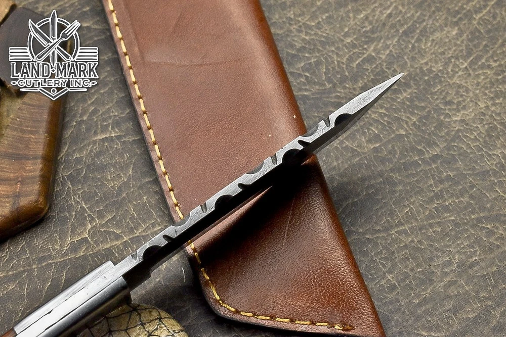 Custom Hand Made D2 STEEL HUNTING KNIFE WITH PAKKA WOOD HANDLE We offer a shipping discount for More then one purchased . And discount will be apply on combine invoice, Discount will not apply on separate payment. ITEM DETAILS OVER ALL LENGTH 8.0 inches long (Approx) HANDLE LENGTH 4.0 inches long (Approx) BLADE LENGTH 4.0 inches long (Approx) BLADE HARDNESS 58-60 HRC Which Holds The Sharp Edge For Long Time. HANDLE PAKKA WOOD COVER LEATHER SHEATH This Awesome custom made KNIFE has a nice hand forged with the combination of 4340 & 1080 steel. HOW OUR DAMASCUS IS MADE: All our Damascus is real and not just an acid etch. Damascus is a mixture of 1080HC and 4340 nickel carbon. You heat them up together and then fold the bar over and over to get the desired layers, ours are 396 layers. Then you burn the blade in acid, and it turns the nickel satin color and the high carbon turns blackish gray. This is how the layers are exposed to show the layers of the new steel created coined "Damascus". All Damascus is acid etched to show the layers. If you high polish the metal it will be shinny satin like all steels. Only after you burn the sides of the blade with acid do you see the layers of the two steels. Makes sense? After we make our knives we high polish the handles and put an edge on the blade. The high polishing buffs off the acid burned layer of the handle, and the blade edge is sharpened and the acid burned edge becomes satin. You can re-burn the tang of the blade near the handles and the edge of the blade and it will show the layers once more. All our knives are hand made, durable and unique ***** YOU WILL RECEIVED THE SAME KNIFE Qality Standards Our Damascus blades are made from high quality non-stainless steels which rival or exceed any Damascus blade made from the 10 series with 4340. Our Damascus combination has taken years to perfect and has been tested under a variety of application which will offer professional performance in categories of toughness, strength (lateral stress) and edge honing and holding ability. In a 5 spot Rockwell test our blades will average near or close to 58 which offers a perfect balances between its toughness and strength.Our blades due to carbon content need to be regularly treated with wax and/or 3 in 1 oil to maintain its superior quality. Questions if you have any question feel free to send us message we aim to answer all questions within 24 hours Feedback If you are not satisfied with our service please contact us before leaving any negative or natural feedback. We will resolve all issues as quickly as possible. Disclaimer We are not responsible for any injuries associated with the use of our tools. Our products are intended for legal use only by responsible buyers. Therefore, we will not sell our products to anyone under the age of 18. Before bidding please check your country laws as some countries Custom don't allow this. If your purchase is held by Custom Authorities in your country/State we will not be responsible for that and no refund will be issued Shipping We offer a 20% shipping discount for More then one purchased . And discount will be apply on combine invoice, Discount will not apply on separate payment We ship within 24 hours after receiving complete payment but this can be delayed due to week ends or Governments and Religious Festivals . . This is beyond our control and we apologize for this inconvenience. Precautions Our Tools are very sharp so open and use them very carefully We are not responsible for any injuries associated with the use of our tools Tips to Care knife 1. NEVER STORE YOUR KNIFE FOR LONG TIME IN LEATHER SHEATH. 2. LEATHER CAN ABSORB WATER, WHICH WILL RUST THE KNIFE. 3. ALWAYS CLEAN THE BLADE AFTER USING WITH OIL OR WAX