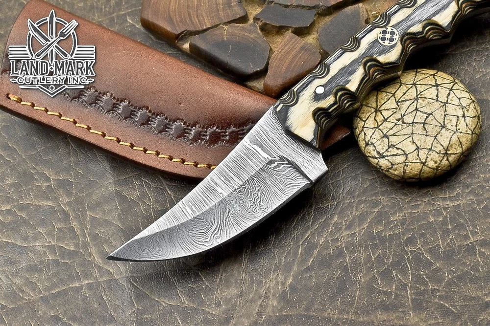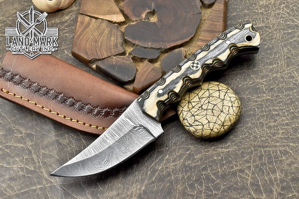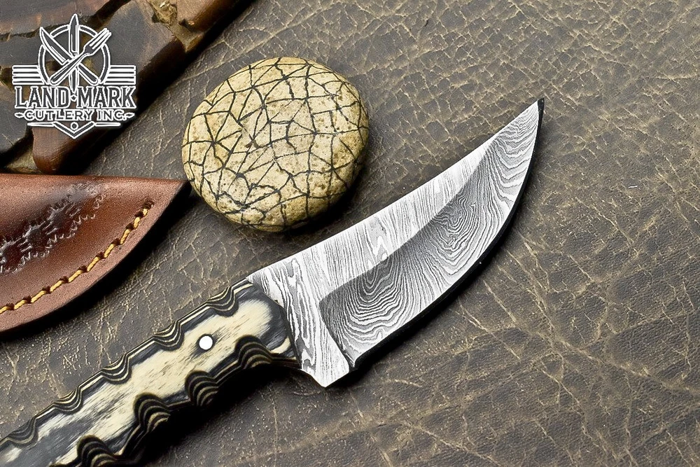 BEAUTIFUL CUSTOM MADE DAMASCUS HANDE MADE HUNTING SKINER KNIFE PAKKA WOOD HANDLE
