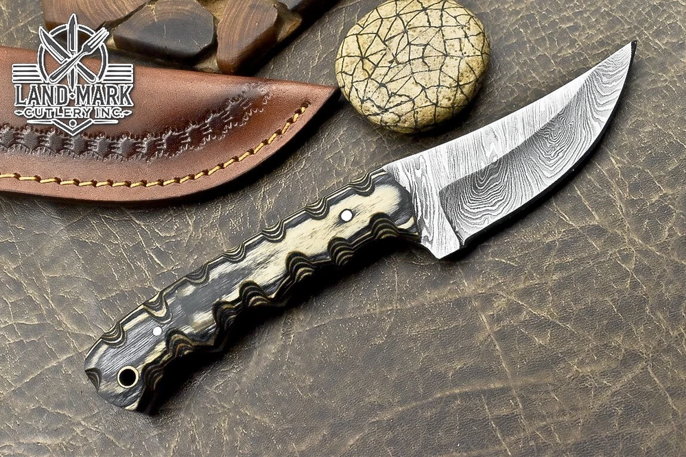 Custom Hand Made DAMASCUS STEEL HUNTING KNIFE WITH PAKKA WOOD HANDLE We offer a shipping discount for More then one purchased . And discount will be apply on combine invoice, Discount will not apply on separate payment. ITEM DETAILS OVER ALL LENGTH 8.0 inches long (Approx) HANDLE LENGTH 4.0 inches long (Approx) BLADE LENGTH 4.0 inches long (Approx) BLADE HARDNESS 58-60 HRC Which Holds The Sharp Edge For Long Time. HANDLE PAKKA WOOD COVER LEATHER SHEATH This Awesome custom made KNIFE has a nice hand forged with the combination of 4340 & 1080 steel. HOW OUR DAMASCUS IS MADE: All our Damascus is real and not just an acid etch. Damascus is a mixture of 1080HC and 4340 nickel carbon. You heat them up together and then fold the bar over and over to get the desired layers, ours are 396 layers. Then you burn the blade in acid, and it turns the nickel satin color and the high carbon turns blackish gray. This is how the layers are exposed to show the layers of the new steel created coined "Damascus". All Damascus is acid etched to show the layers. If you high polish the metal it will be shinny satin like all steels. Only after you burn the sides of the blade with acid do you see the layers of the two steels. Makes sense? After we make our knives we high polish the handles and put an edge on the blade. The high polishing buffs off the acid burned layer of the handle, and the blade edge is sharpened and the acid burned edge becomes satin. You can re-burn the tang of the blade near the handles and the edge of the blade and it will show the layers once more. All our knives are hand made, durable and unique ***** YOU WILL RECEIVED THE SAME KNIFE Qality Standards Our Damascus blades are made from high quality non-stainless steels which rival or exceed any Damascus blade made from the 10 series with 4340. Our Damascus combination has taken years to perfect and has been tested under a variety of application which will offer professional performance in categories of toughness, strength (lateral stress) and edge honing and holding ability. In a 5 spot Rockwell test our blades will average near or close to 58 which offers a perfect balances between its toughness and strength.Our blades due to carbon content need to be regularly treated with wax and/or 3 in 1 oil to maintain its superior quality. Questions if you have any question feel free to send us message we aim to answer all questions within 24 hours Feedback If you are not satisfied with our service please contact us before leaving any negative or natural feedback. We will resolve all issues as quickly as possible. Disclaimer We are not responsible for any injuries associated with the use of our tools. Our products are intended for legal use only by responsible buyers. Therefore, we will not sell our products to anyone under the age of 18. Before bidding please check your country laws as some countries Custom don't allow this. If your purchase is held by Custom Authorities in your country/State we will not be responsible for that and no refund will be issued Shipping We offer a 20% shipping discount for More then one purchased . And discount will be apply on combine invoice, Discount will not apply on separate payment We ship within 24 hours after receiving complete payment but this can be delayed due to week ends or Governments and Religious Festivals . . This is beyond our control and we apologize for this inconvenience. Precautions Our Tools are very sharp so open and use them very carefully We are not responsible for any injuries associated with the use of our tools Tips to Care knife 1. NEVER STORE YOUR KNIFE FOR LONG TIME IN LEATHER SHEATH. 2. LEATHER CAN ABSORB WATER, WHICH WILL RUST THE KNIFE. 3. ALWAYS CLEAN THE BLADE AFTER USING WITH OIL OR WAX