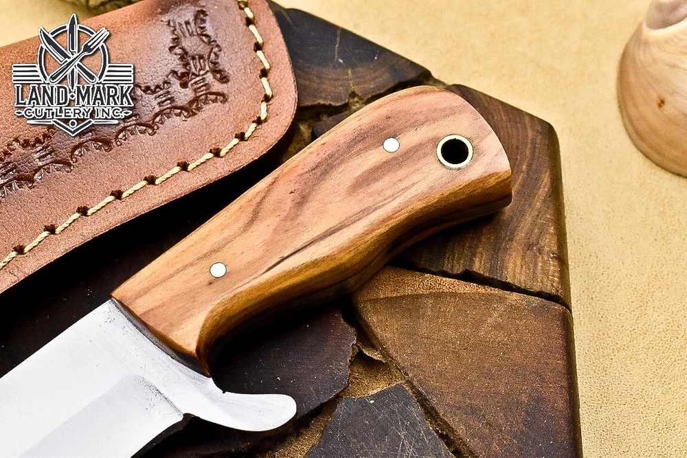 Custom Hand Made D2 STEEL HUNTING KNIFE WITH OLIVE WOOD HANDLE We offer a shipping discount for More then one purchased . And discount will be apply on combine invoice, Discount will not apply on separate payment. ITEM DETAILS OVER ALL LENGTH 3.0 inches long (Approx) HANDLE LENGTH 1.5 inches long (Approx) BLADE LENGTH 1.5 inches long (Approx) BLADE HARDNESS 58-60 HRC Which Holds The Sharp Edge For Long Time. HANDLE OLIVE WOOD COVER LEATHER SHEATH This Awesome custom made KNIFE has a nice hand forged with the combination of 4340 & 1080 steel. HOW OUR DAMASCUS IS MADE: All our Damascus is real and not just an acid etch. Damascus is a mixture of 1080HC and 4340 nickel carbon. You heat them up together and then fold the bar over and over to get the desired layers, ours are 396 layers. Then you burn the blade in acid, and it turns the nickel satin color and the high carbon turns blackish gray. This is how the layers are exposed to show the layers of the new steel created coined "Damascus". All Damascus is acid etched to show the layers. If you high polish the metal it will be shinny satin like all steels. Only after you burn the sides of the blade with acid do you see the layers of the two steels. Makes sense? After we make our knives we high polish the handles and put an edge on the blade. The high polishing buffs off the acid burned layer of the handle, and the blade edge is sharpened and the acid burned edge becomes satin. You can re-burn the tang of the blade near the handles and the edge of the blade and it will show the layers once more. All our knives are hand made, durable and unique ***** YOU WILL RECEIVED THE SAME KNIFE Qality Standards Our Damascus blades are made from high quality non-stainless steels which rival or exceed any Damascus blade made from the 10 series with 4340. Our Damascus combination has taken years to perfect and has been tested under a variety of application which will offer professional performance in categories of toughness, strength (lateral stress) and edge honing and holding ability. In a 5 spot Rockwell test our blades will average near or close to 58 which offers a perfect balances between its toughness and strength.Our blades due to carbon content need to be regularly treated with wax and/or 3 in 1 oil to maintain its superior quality. Questions if you have any question feel free to send us message we aim to answer all questions within 24 hours Feedback If you are not satisfied with our service please contact us before leaving any negative or natural feedback. We will resolve all issues as quickly as possible. Disclaimer We are not responsible for any injuries associated with the use of our tools. Our products are intended for legal use only by responsible buyers. Therefore, we will not sell our products to anyone under the age of 18. Before bidding please check your country laws as some countries Custom don't allow this. If your purchase is held by Custom Authorities in your country/State we will not be responsible for that and no refund will be issued Shipping We offer a 20% shipping discount for More then one purchased . And discount will be apply on combine invoice, Discount will not apply on separate payment We ship within 24 hours after receiving complete payment but this can be delayed due to week ends or Governments and Religious Festivals . . This is beyond our control and we apologize for this inconvenience. Precautions Our Tools are very sharp so open and use them very carefully We are not responsible for any injuries associated with the use of our tools Tips to Care knife 1. NEVER STORE YOUR KNIFE FOR LONG TIME IN LEATHER SHEATH. 2. LEATHER CAN ABSORB WATER, WHICH WILL RUST THE KNIFE. 3. ALWAYS CLEAN THE BLADE AFTER USING WITH OIL OR WAX