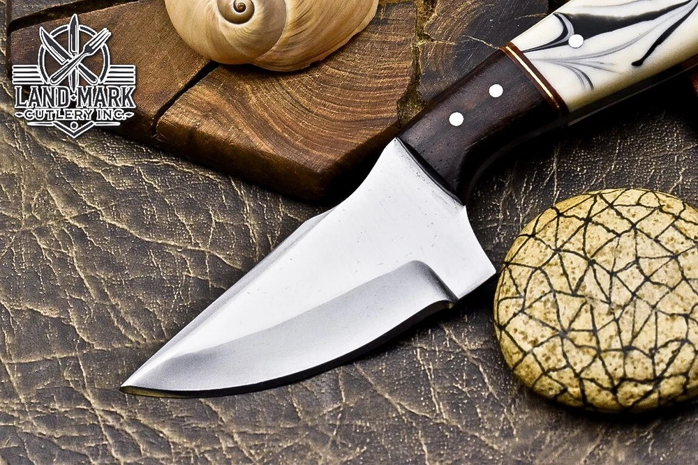 Custom Hand Made DAMASCUS STEEL HUNTING KNIFE WITH RESIN & WOOD HANDLE We offer a shipping discount for More then one purchased . And discount will be apply on combine invoice, Discount will not apply on separate payment. ITEM DETAILS OVER ALL LENGTH 3.0 inches long (Approx) HANDLE LENGTH 1.5 inches long (Approx) BLADE LENGTH 1.5 inches long (Approx) BLADE HARDNESS 58-60 HRC Which Holds The Sharp Edge For Long Time. HANDLE RESIN & WOOD COVER LEATHER SHEATH This Awesome custom made KNIFE has a nice hand forged with the combination of 4340 & 1080 steel. HOW OUR DAMASCUS IS MADE: All our Damascus is real and not just an acid etch. Damascus is a mixture of 1080HC and 4340 nickel carbon. You heat them up together and then fold the bar over and over to get the desired layers, ours are 396 layers. Then you burn the blade in acid, and it turns the nickel satin color and the high carbon turns blackish gray. This is how the layers are exposed to show the layers of the new steel created coined "Damascus". All Damascus is acid etched to show the layers. If you high polish the metal it will be shinny satin like all steels. Only after you burn the sides of the blade with acid do you see the layers of the two steels. Makes sense? After we make our knives we high polish the handles and put an edge on the blade. The high polishing buffs off the acid burned layer of the handle, and the blade edge is sharpened and the acid burned edge becomes satin. You can re-burn the tang of the blade near the handles and the edge of the blade and it will show the layers once more. All our knives are hand made, durable and unique ***** YOU WILL RECEIVED THE SAME KNIFE Qality Standards Our Damascus blades are made from high quality non-stainless steels which rival or exceed any Damascus blade made from the 10 series with 4340. Our Damascus combination has taken years to perfect and has been tested under a variety of application which will offer professional performance in categories of toughness, strength (lateral stress) and edge honing and holding ability. In a 5 spot Rockwell test our blades will average near or close to 58 which offers a perfect balances between its toughness and strength.Our blades due to carbon content need to be regularly treated with wax and/or 3 in 1 oil to maintain its superior quality. Questions if you have any question feel free to send us message we aim to answer all questions within 24 hours Feedback If you are not satisfied with our service please contact us before leaving any negative or natural feedback. We will resolve all issues as quickly as possible. Disclaimer We are not responsible for any injuries associated with the use of our tools. Our products are intended for legal use only by responsible buyers. Therefore, we will not sell our products to anyone under the age of 18. Before bidding please check your country laws as some countries Custom don't allow this. If your purchase is held by Custom Authorities in your country/State we will not be responsible for that and no refund will be issued Shipping We offer a 20% shipping discount for More then one purchased . And discount will be apply on combine invoice, Discount will not apply on separate payment We ship within 24 hours after receiving complete payment but this can be delayed due to week ends or Governments and Religious Festivals . . This is beyond our control and we apologize for this inconvenience. Precautions Our Tools are very sharp so open and use them very carefully We are not responsible for any injuries associated with the use of our tools Tips to Care knife 1. NEVER STORE YOUR KNIFE FOR LONG TIME IN LEATHER SHEATH. 2. LEATHER CAN ABSORB WATER, WHICH WILL RUST THE KNIFE. 3. ALWAYS CLEAN THE BLADE AFTER USING WITH OIL OR WAX