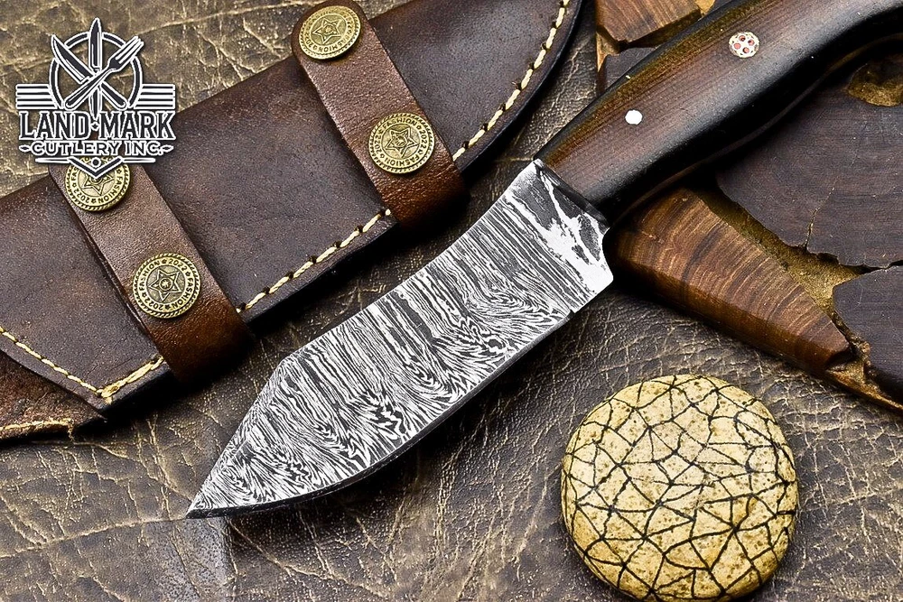 BEAUTIFUL DAMASCUS HANDE MADE HUNTING SKINER KNIFE WITH BROWN MICARTA HANDLE