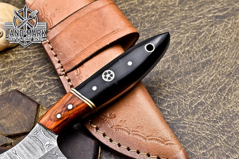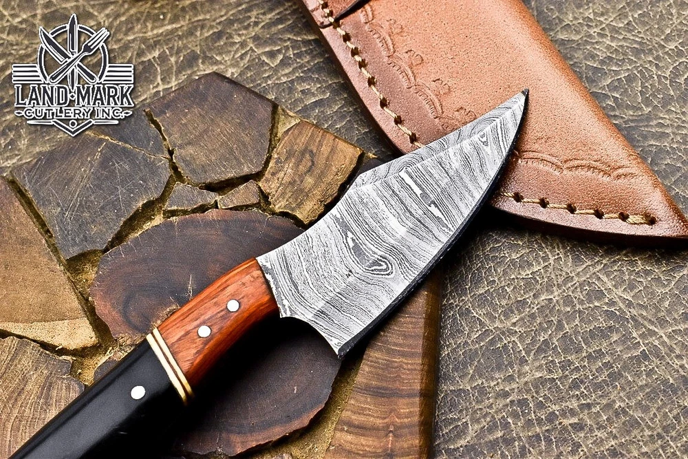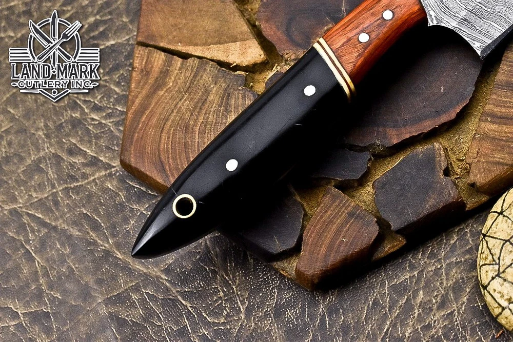 Custom Hand Made DAMASCUS STEEL HUNTING KNIFE WITH BLACK HANDLE We offer a shipping discount for More then one purchased . And discount will be apply on combine invoice, Discount will not apply on separate payment. ITEM DETAILS OVER ALL LENGTH 8.0 inches long (Approx) HANDLE LENGTH 4.0 inches long (Approx) BLADE LENGTH 4.0 inches long (Approx) BLADE HARDNESS 58-60 HRC Which Holds The Sharp Edge For Long Time. HANDLE BLACK COVER LEATHER SHEATH This Awesome custom made KNIFE has a nice hand forged with the combination of 4340 & 1080 steel. HOW OUR DAMASCUS IS MADE: All our Damascus is real and not just an acid etch. Damascus is a mixture of 1080HC and 4340 nickel carbon. You heat them up together and then fold the bar over and over to get the desired layers, ours are 396 layers. Then you burn the blade in acid, and it turns the nickel satin color and the high carbon turns blackish gray. This is how the layers are exposed to show the layers of the new steel created coined "Damascus". All Damascus is acid etched to show the layers. If you high polish the metal it will be shinny satin like all steels. Only after you burn the sides of the blade with acid do you see the layers of the two steels. Makes sense? After we make our knives we high polish the handles and put an edge on the blade. The high polishing buffs off the acid burned layer of the handle, and the blade edge is sharpened and the acid burned edge becomes satin. You can re-burn the tang of the blade near the handles and the edge of the blade and it will show the layers once more. All our knives are hand made, durable and unique ***** YOU WILL RECEIVED THE SAME KNIFE Qality Standards Our Damascus blades are made from high quality non-stainless steels which rival or exceed any Damascus blade made from the 10 series with 4340. Our Damascus combination has taken years to perfect and has been tested under a variety of application which will offer professional performance in categories of toughness, strength (lateral stress) and edge honing and holding ability. In a 5 spot Rockwell test our blades will average near or close to 58 which offers a perfect balances between its toughness and strength.Our blades due to carbon content need to be regularly treated with wax and/or 3 in 1 oil to maintain its superior quality. Questions if you have any question feel free to send us message we aim to answer all questions within 24 hours Feedback If you are not satisfied with our service please contact us before leaving any negative or natural feedback. We will resolve all issues as quickly as possible. Disclaimer We are not responsible for any injuries associated with the use of our tools. Our products are intended for legal use only by responsible buyers. Therefore, we will not sell our products to anyone under the age of 18. Before bidding please check your country laws as some countries Custom don't allow this. If your purchase is held by Custom Authorities in your country/State we will not be responsible for that and no refund will be issued Shipping We offer a 20% shipping discount for More then one purchased . And discount will be apply on combine invoice, Discount will not apply on separate payment We ship within 24 hours after receiving complete payment but this can be delayed due to week ends or Governments and Religious Festivals . . This is beyond our control and we apologize for this inconvenience. Precautions Our Tools are very sharp so open and use them very carefully We are not responsible for any injuries associated with the use of our tools Tips to Care knife 1. NEVER STORE YOUR KNIFE FOR LONG TIME IN LEATHER SHEATH. 2. LEATHER CAN ABSORB WATER, WHICH WILL RUST THE KNIFE. 3. ALWAYS CLEAN THE BLADE AFTER USING WITH OIL OR WAX
