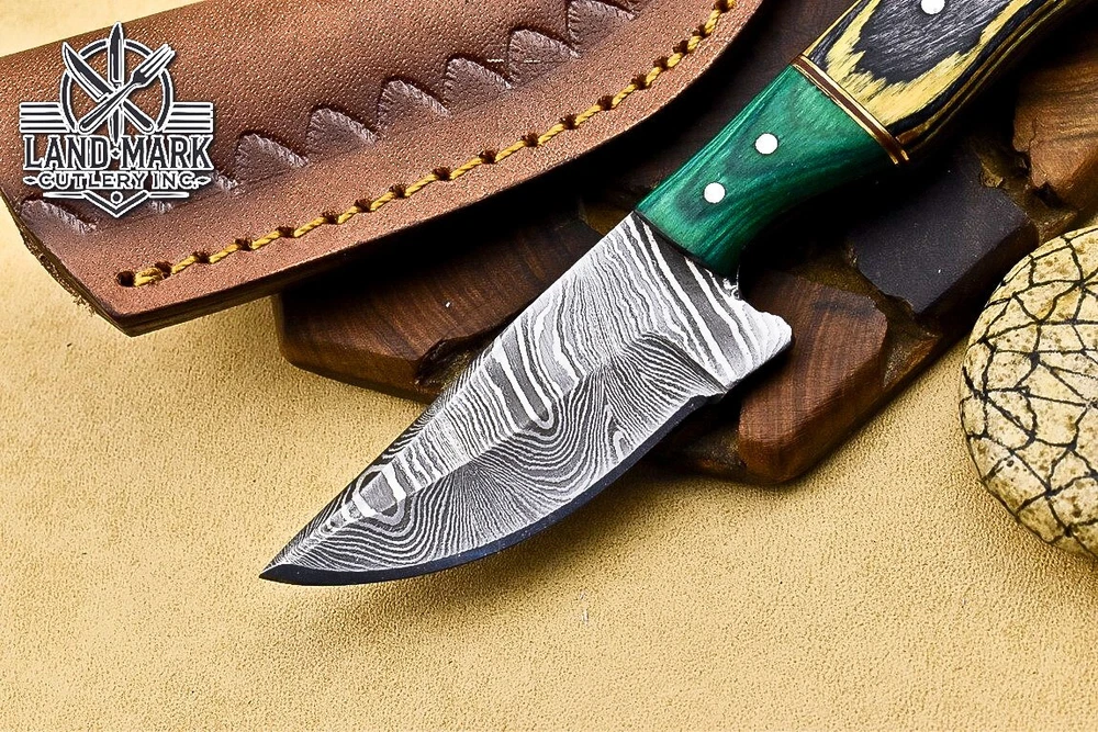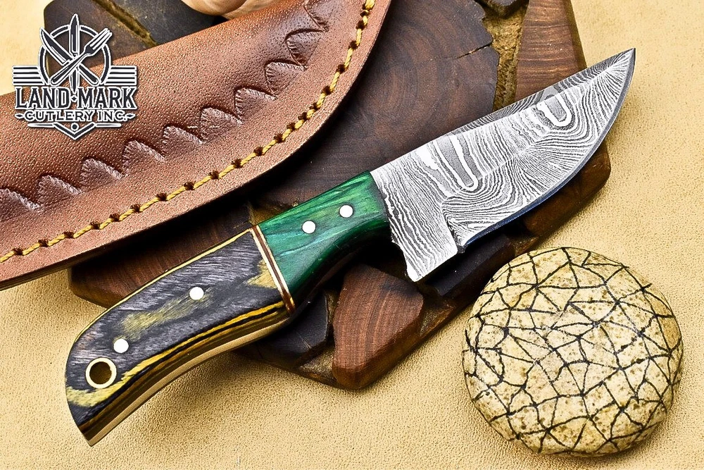Custom Hand Made DAMASCUS STEEL HUNTING KNIFE WITH PAKKA WOOD HANDLE We offer a shipping discount for More then one purchased . And discount will be apply on combine invoice, Discount will not apply on separate payment. ITEM DETAILS OVER ALL LENGTH 8.0 inches long (Approx) HANDLE LENGTH 4.0 inches long (Approx) BLADE LENGTH 4.0 inches long (Approx) BLADE HARDNESS 58-60 HRC Which Holds The Sharp Edge For Long Time. HANDLE PAKKA WOOD COVER LEATHER SHEATH This Awesome custom made KNIFE has a nice hand forged with the combination of 4340 & 1080 steel. HOW OUR DAMASCUS IS MADE: All our Damascus is real and not just an acid etch. Damascus is a mixture of 1080HC and 4340 nickel carbon. You heat them up together and then fold the bar over and over to get the desired layers, ours are 396 layers. Then you burn the blade in acid, and it turns the nickel satin color and the high carbon turns blackish gray. This is how the layers are exposed to show the layers of the new steel created coined "Damascus". All Damascus is acid etched to show the layers. If you high polish the metal it will be shinny satin like all steels. Only after you burn the sides of the blade with acid do you see the layers of the two steels. Makes sense? After we make our knives we high polish the handles and put an edge on the blade. The high polishing buffs off the acid burned layer of the handle, and the blade edge is sharpened and the acid burned edge becomes satin. You can re-burn the tang of the blade near the handles and the edge of the blade and it will show the layers once more. All our knives are hand made, durable and unique ***** YOU WILL RECEIVED THE SAME KNIFE Qality Standards Our Damascus blades are made from high quality non-stainless steels which rival or exceed any Damascus blade made from the 10 series with 4340. Our Damascus combination has taken years to perfect and has been tested under a variety of application which will offer professional performance in categories of toughness, strength (lateral stress) and edge honing and holding ability. In a 5 spot Rockwell test our blades will average near or close to 58 which offers a perfect balances between its toughness and strength.Our blades due to carbon content need to be regularly treated with wax and/or 3 in 1 oil to maintain its superior quality. Questions if you have any question feel free to send us message we aim to answer all questions within 24 hours Feedback If you are not satisfied with our service please contact us before leaving any negative or natural feedback. We will resolve all issues as quickly as possible. Disclaimer We are not responsible for any injuries associated with the use of our tools. Our products are intended for legal use only by responsible buyers. Therefore, we will not sell our products to anyone under the age of 18. Before bidding please check your country laws as some countries Custom don't allow this. If your purchase is held by Custom Authorities in your country/State we will not be responsible for that and no refund will be issued Shipping We offer a 20% shipping discount for More then one purchased . And discount will be apply on combine invoice, Discount will not apply on separate payment We ship within 24 hours after receiving complete payment but this can be delayed due to week ends or Governments and Religious Festivals . . This is beyond our control and we apologize for this inconvenience. Precautions Our Tools are very sharp so open and use them very carefully We are not responsible for any injuries associated with the use of our tools Tips to Care knife 1. NEVER STORE YOUR KNIFE FOR LONG TIME IN LEATHER SHEATH. 2. LEATHER CAN ABSORB WATER, WHICH WILL RUST THE KNIFE. 3. ALWAYS CLEAN THE BLADE AFTER USING WITH OIL OR WAX
