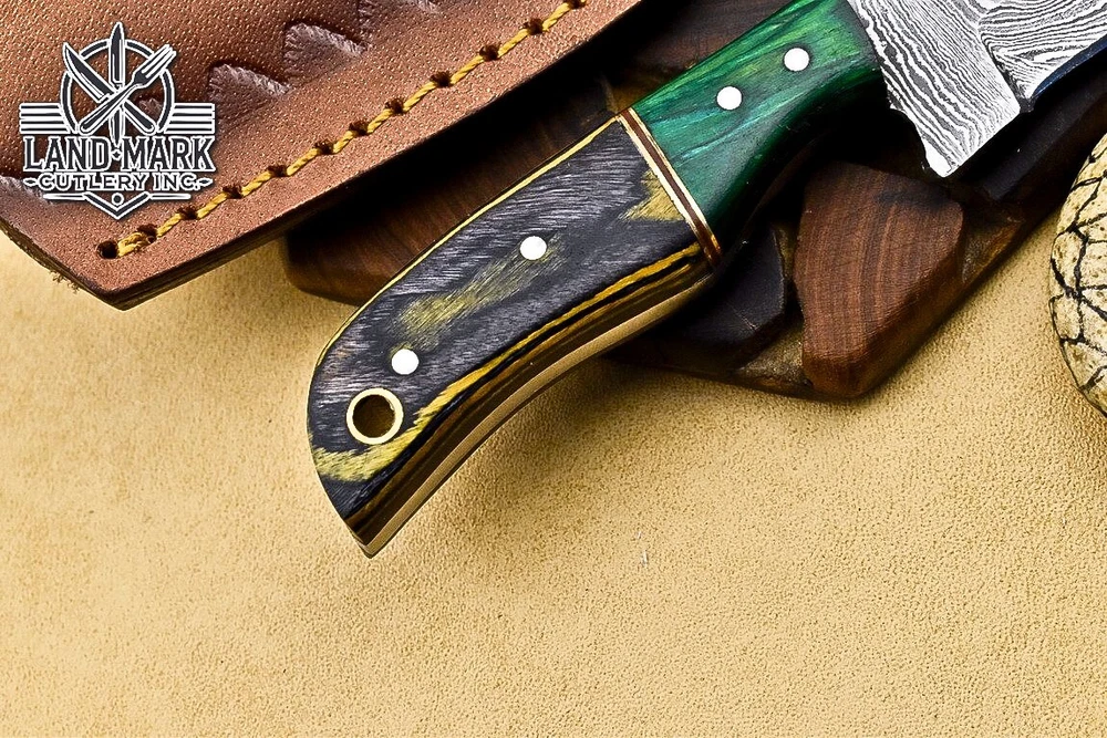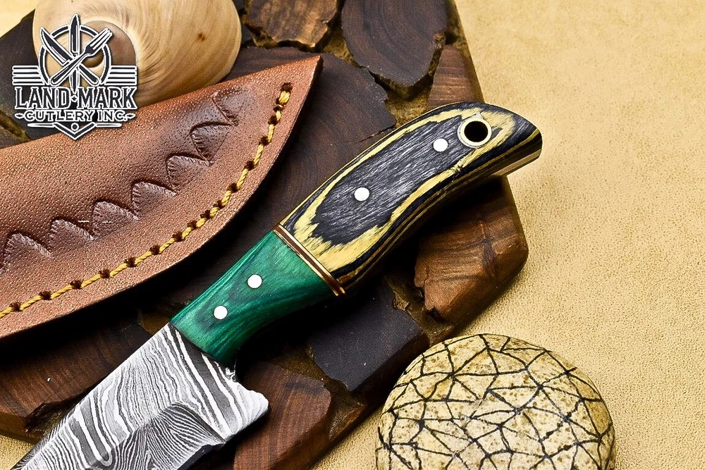 BEAUTIFUL DAMASCUS HANDE MADE HUNTING SKINNER KNIFE WITH PAKKA WOOD HANDLE