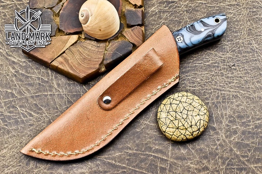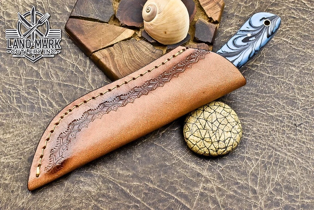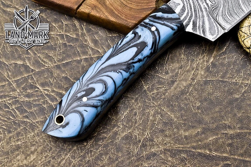 Custom Hand Made DAMASCUS STEEL HUNTING KNIFE WITH RESIN HANDLE We offer a shipping discount for More then one purchased . And discount will be apply on combine invoice, Discount will not apply on separate payment. ITEM DETAILS OVER ALL LENGTH 8.0 inches long (Approx) HANDLE LENGTH 4.0 inches long (Approx) BLADE LENGTH 4.0 inches long (Approx) BLADE HARDNESS 58-60 HRC Which Holds The Sharp Edge For Long Time. HANDLE RESIN COVER LEATHER SHEATH This Awesome custom made KNIFE has a nice hand forged with the combination of 4340 & 1080 steel. HOW OUR DAMASCUS IS MADE: All our Damascus is real and not just an acid etch. Damascus is a mixture of 1080HC and 4340 nickel carbon. You heat them up together and then fold the bar over and over to get the desired layers, ours are 396 layers. Then you burn the blade in acid, and it turns the nickel satin color and the high carbon turns blackish gray. This is how the layers are exposed to show the layers of the new steel created coined "Damascus". All Damascus is acid etched to show the layers. If you high polish the metal it will be shinny satin like all steels. Only after you burn the sides of the blade with acid do you see the layers of the two steels. Makes sense? After we make our knives we high polish the handles and put an edge on the blade. The high polishing buffs off the acid burned layer of the handle, and the blade edge is sharpened and the acid burned edge becomes satin. You can re-burn the tang of the blade near the handles and the edge of the blade and it will show the layers once more. All our knives are hand made, durable and unique ***** YOU WILL RECEIVED THE SAME KNIFE Qality Standards Our Damascus blades are made from high quality non-stainless steels which rival or exceed any Damascus blade made from the 10 series with 4340. Our Damascus combination has taken years to perfect and has been tested under a variety of application which will offer professional performance in categories of toughness, strength (lateral stress) and edge honing and holding ability. In a 5 spot Rockwell test our blades will average near or close to 58 which offers a perfect balances between its toughness and strength.Our blades due to carbon content need to be regularly treated with wax and/or 3 in 1 oil to maintain its superior quality. Questions if you have any question feel free to send us message we aim to answer all questions within 24 hours Feedback If you are not satisfied with our service please contact us before leaving any negative or natural feedback. We will resolve all issues as quickly as possible. Disclaimer We are not responsible for any injuries associated with the use of our tools. Our products are intended for legal use only by responsible buyers. Therefore, we will not sell our products to anyone under the age of 18. Before bidding please check your country laws as some countries Custom don't allow this. If your purchase is held by Custom Authorities in your country/State we will not be responsible for that and no refund will be issued Shipping We offer a 20% shipping discount for More then one purchased . And discount will be apply on combine invoice, Discount will not apply on separate payment We ship within 24 hours after receiving complete payment but this can be delayed due to week ends or Governments and Religious Festivals . . This is beyond our control and we apologize for this inconvenience. Precautions Our Tools are very sharp so open and use them very carefully We are not responsible for any injuries associated with the use of our tools Tips to Care knife 1. NEVER STORE YOUR KNIFE FOR LONG TIME IN LEATHER SHEATH. 2. LEATHER CAN ABSORB WATER, WHICH WILL RUST THE KNIFE. 3. ALWAYS CLEAN THE BLADE AFTER USING WITH OIL OR WAX