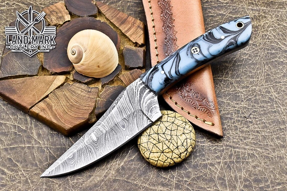 BEAUTIFUL DAMASCUS HANDE MADE HUNTING SKINNER KNIFE WITH RESIN HANDLE
