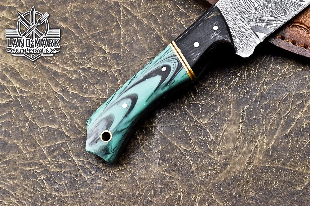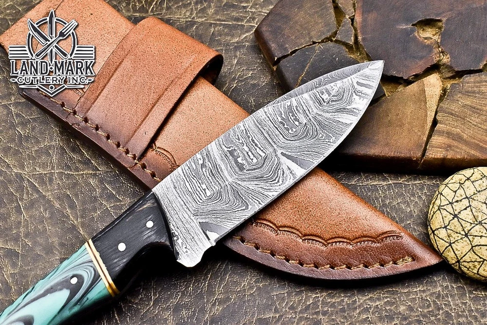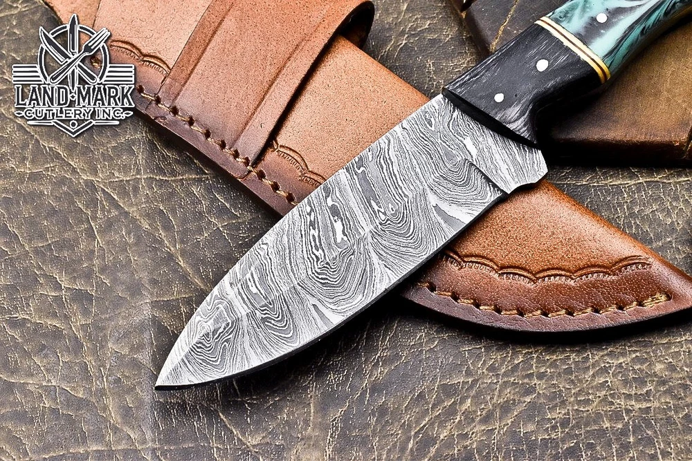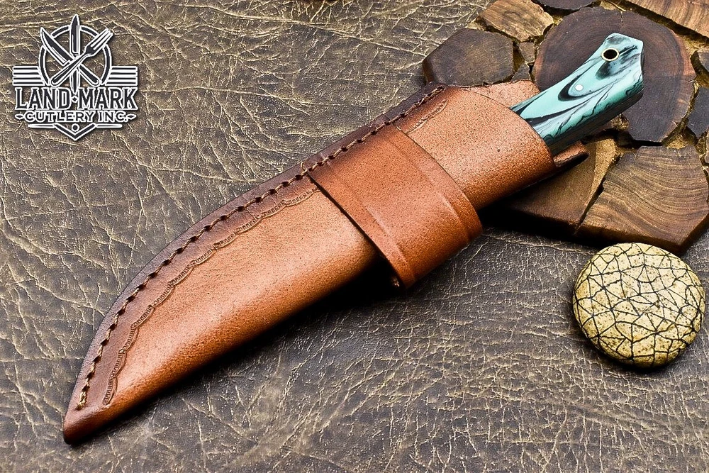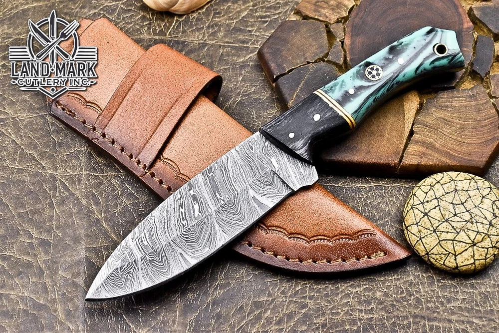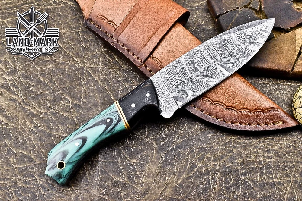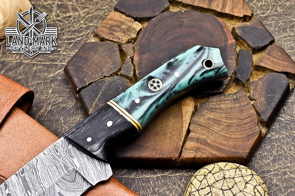 Custom Hand Made DAMASCUS STEEL HUNTING KNIFE WITH RESIN HANDLE We offer a shipping discount for More then one purchased . And discount will be apply on combine invoice, Discount will not apply on separate payment. ITEM DETAILS OVER ALL LENGTH 8.0 inches long (Approx) HANDLE LENGTH 4.0 inches long (Approx) BLADE LENGTH 4.0 inches long (Approx) BLADE HARDNESS 58-60 HRC Which Holds The Sharp Edge For Long Time. HANDLE RESIN COVER LEATHER SHEATH This Awesome custom made KNIFE has a nice hand forged with the combination of 4340 & 1080 steel. HOW OUR DAMASCUS IS MADE: All our Damascus is real and not just an acid etch. Damascus is a mixture of 1080HC and 4340 nickel carbon. You heat them up together and then fold the bar over and over to get the desired layers, ours are 396 layers. Then you burn the blade in acid, and it turns the nickel satin color and the high carbon turns blackish gray. This is how the layers are exposed to show the layers of the new steel created coined "Damascus". All Damascus is acid etched to show the layers. If you high polish the metal it will be shinny satin like all steels. Only after you burn the sides of the blade with acid do you see the layers of the two steels. Makes sense? After we make our knives we high polish the handles and put an edge on the blade. The high polishing buffs off the acid burned layer of the handle, and the blade edge is sharpened and the acid burned edge becomes satin. You can re-burn the tang of the blade near the handles and the edge of the blade and it will show the layers once more. All our knives are hand made, durable and unique ***** YOU WILL RECEIVED THE SAME KNIFE Qality Standards Our Damascus blades are made from high quality non-stainless steels which rival or exceed any Damascus blade made from the 10 series with 4340. Our Damascus combination has taken years to perfect and has been tested under a variety of application which will offer professional performance in categories of toughness, strength (lateral stress) and edge honing and holding ability. In a 5 spot Rockwell test our blades will average near or close to 58 which offers a perfect balances between its toughness and strength.Our blades due to carbon content need to be regularly treated with wax and/or 3 in 1 oil to maintain its superior quality. Questions if you have any question feel free to send us message we aim to answer all questions within 24 hours Feedback If you are not satisfied with our service please contact us before leaving any negative or natural feedback. We will resolve all issues as quickly as possible. Disclaimer We are not responsible for any injuries associated with the use of our tools. Our products are intended for legal use only by responsible buyers. Therefore, we will not sell our products to anyone under the age of 18. Before bidding please check your country laws as some countries Custom don't allow this. If your purchase is held by Custom Authorities in your country/State we will not be responsible for that and no refund will be issued Shipping We offer a 20% shipping discount for More then one purchased . And discount will be apply on combine invoice, Discount will not apply on separate payment We ship within 24 hours after receiving complete payment but this can be delayed due to week ends or Governments and Religious Festivals . . This is beyond our control and we apologize for this inconvenience. Precautions Our Tools are very sharp so open and use them very carefully We are not responsible for any injuries associated with the use of our tools Tips to Care knife 1. NEVER STORE YOUR KNIFE FOR LONG TIME IN LEATHER SHEATH. 2. LEATHER CAN ABSORB WATER, WHICH WILL RUST THE KNIFE. 3. ALWAYS CLEAN THE BLADE AFTER USING WITH OIL OR WAX