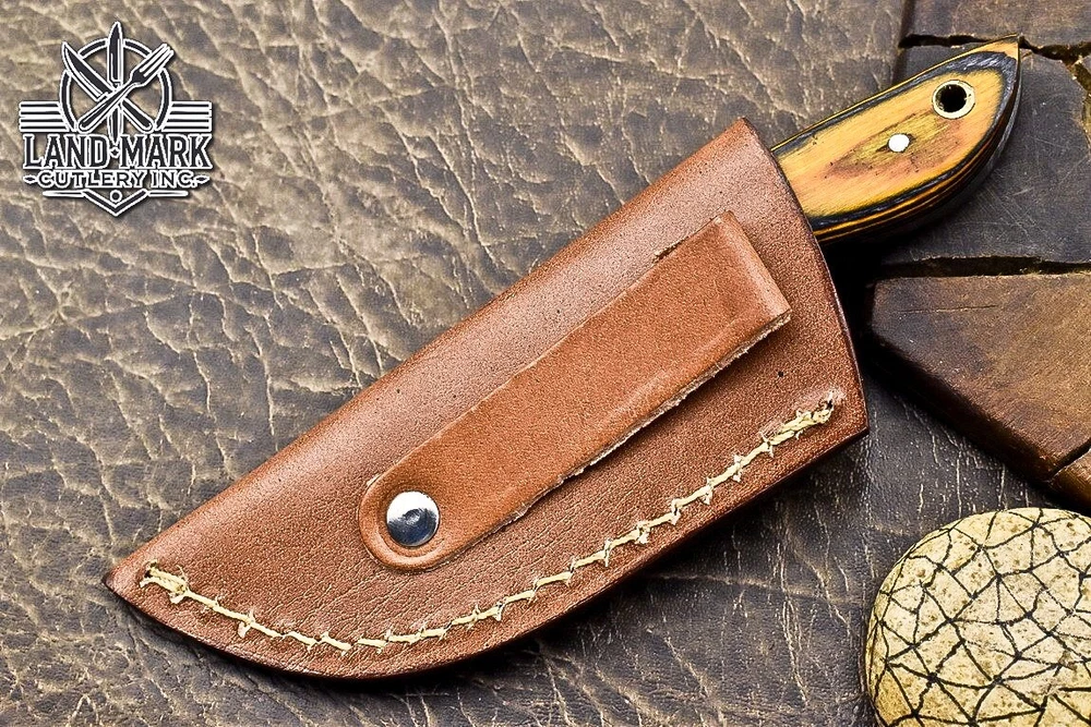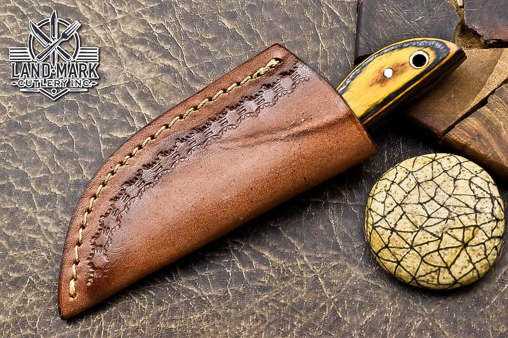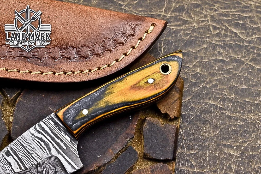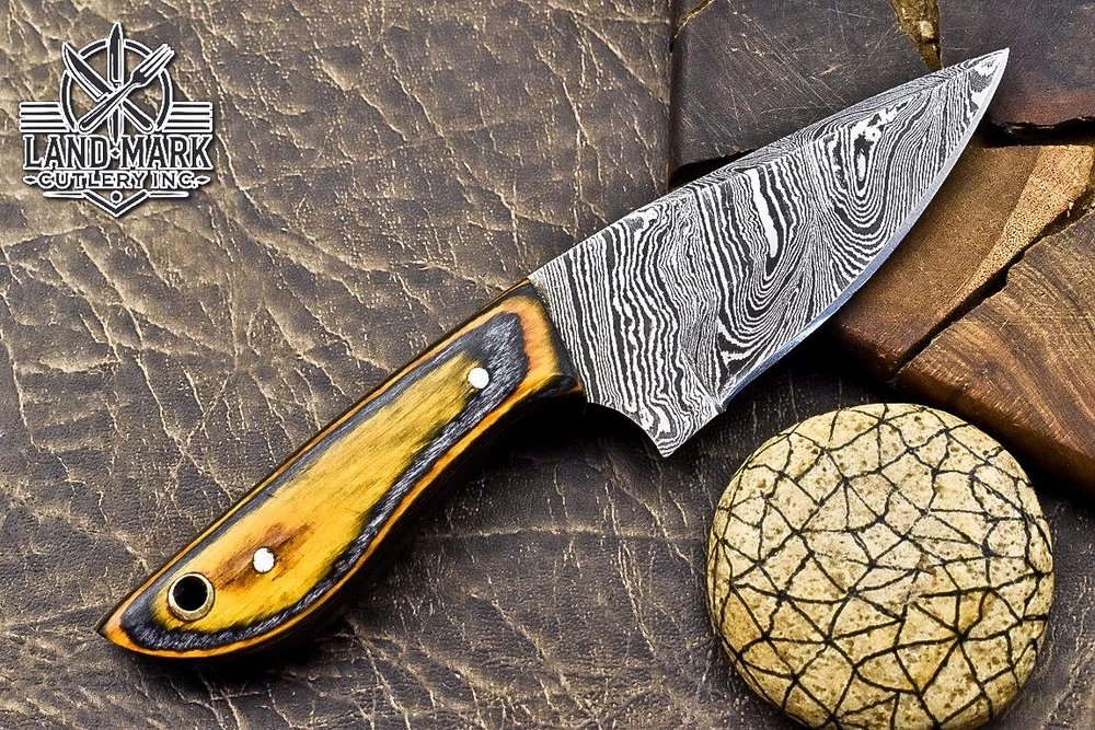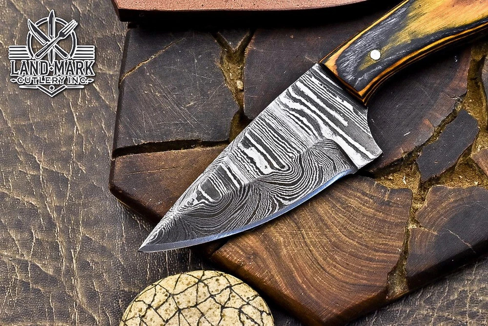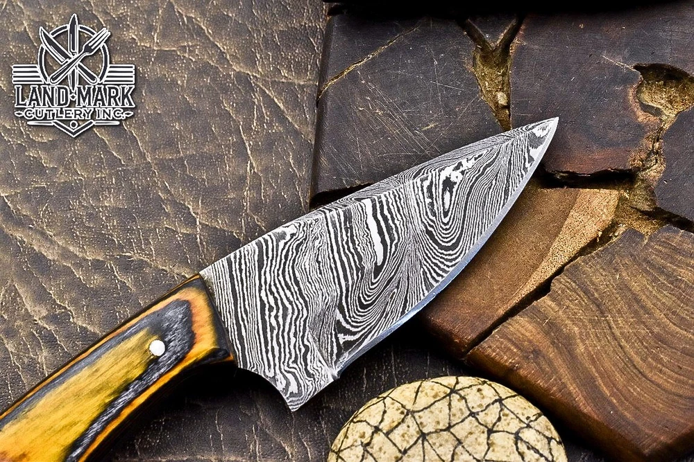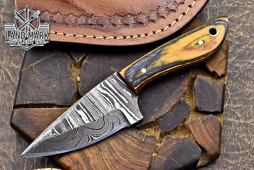 Custom Hand Made DAMASCUS STEEL HUNTING KNIFE WITH PAKKA WOOD HANDLE We offer a shipping discount for More then one purchased . And discount will be apply on combine invoice, Discount will not apply on separate payment. ITEM DETAILS OVER ALL LENGTH 3.0 inches long (Approx) HANDLE LENGTH 1.5 inches long (Approx) BLADE LENGTH 1.5 inches long (Approx) BLADE HARDNESS 58-60 HRC Which Holds The Sharp Edge For Long Time. HANDLE PAKKA WOOD COVER LEATHER SHEATH This Awesome custom made KNIFE has a nice hand forged with the combination of 4340 & 1080 steel. HOW OUR DAMASCUS IS MADE: All our Damascus is real and not just an acid etch. Damascus is a mixture of 1080HC and 4340 nickel carbon. You heat them up together and then fold the bar over and over to get the desired layers, ours are 396 layers. Then you burn the blade in acid, and it turns the nickel satin color and the high carbon turns blackish gray. This is how the layers are exposed to show the layers of the new steel created coined "Damascus". All Damascus is acid etched to show the layers. If you high polish the metal it will be shinny satin like all steels. Only after you burn the sides of the blade with acid do you see the layers of the two steels. Makes sense? After we make our knives we high polish the handles and put an edge on the blade. The high polishing buffs off the acid burned layer of the handle, and the blade edge is sharpened and the acid burned edge becomes satin. You can re-burn the tang of the blade near the handles and the edge of the blade and it will show the layers once more. All our knives are hand made, durable and unique ***** YOU WILL RECEIVED THE SAME KNIFE Qality Standards Our Damascus blades are made from high quality non-stainless steels which rival or exceed any Damascus blade made from the 10 series with 4340. Our Damascus combination has taken years to perfect and has been tested under a variety of application which will offer professional performance in categories of toughness, strength (lateral stress) and edge honing and holding ability. In a 5 spot Rockwell test our blades will average near or close to 58 which offers a perfect balances between its toughness and strength.Our blades due to carbon content need to be regularly treated with wax and/or 3 in 1 oil to maintain its superior quality. Questions if you have any question feel free to send us message we aim to answer all questions within 24 hours Feedback If you are not satisfied with our service please contact us before leaving any negative or natural feedback. We will resolve all issues as quickly as possible. Disclaimer We are not responsible for any injuries associated with the use of our tools. Our products are intended for legal use only by responsible buyers. Therefore, we will not sell our products to anyone under the age of 18. Before bidding please check your country laws as some countries Custom don't allow this. If your purchase is held by Custom Authorities in your country/State we will not be responsible for that and no refund will be issued Shipping We offer a 20% shipping discount for More then one purchased . And discount will be apply on combine invoice, Discount will not apply on separate payment We ship within 24 hours after receiving complete payment but this can be delayed due to week ends or Governments and Religious Festivals . . This is beyond our control and we apologize for this inconvenience. Precautions Our Tools are very sharp so open and use them very carefully We are not responsible for any injuries associated with the use of our tools Tips to Care knife 1. NEVER STORE YOUR KNIFE FOR LONG TIME IN LEATHER SHEATH. 2. LEATHER CAN ABSORB WATER, WHICH WILL RUST THE KNIFE. 3. ALWAYS CLEAN THE BLADE AFTER USING WITH OIL OR WAX