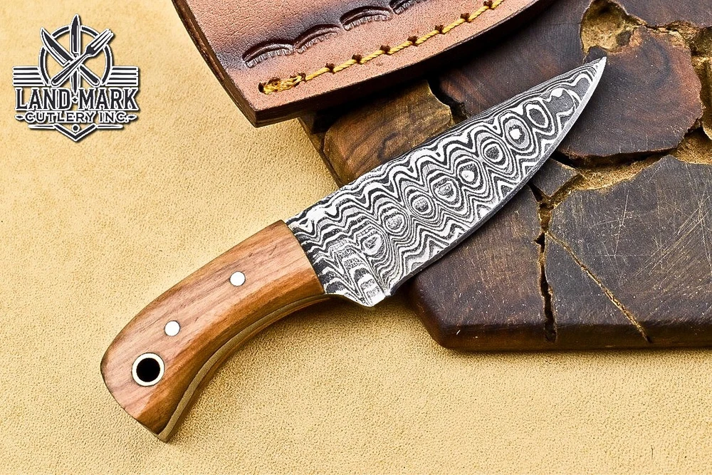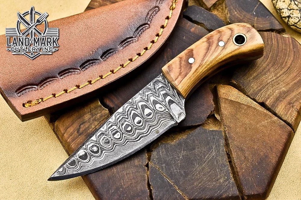 Custom Hand Made D2 STEEL HUNTING KNIFE WITH OLIVE WOOD HANDLE We offer a shipping discount for More then one purchased . And discount will be apply on combine invoice, Discount will not apply on separate payment. ITEM DETAILS OVER ALL LENGTH 3.0 inches long (Approx) HANDLE LENGTH 1.5 inches long (Approx) BLADE LENGTH 1.5 inches long (Approx) BLADE HARDNESS 58-60 HRC Which Holds The Sharp Edge For Long Time. HANDLE OLIVE WOOD COVER LEATHER SHEATH This Awesome custom made KNIFE has a nice hand forged with the combination of 4340 & 1080 steel. HOW OUR DAMASCUS IS MADE: All our Damascus is real and not just an acid etch. Damascus is a mixture of 1080HC and 4340 nickel carbon. You heat them up together and then fold the bar over and over to get the desired layers, ours are 396 layers. Then you burn the blade in acid, and it turns the nickel satin color and the high carbon turns blackish gray. This is how the layers are exposed to show the layers of the new steel created coined "Damascus". All Damascus is acid etched to show the layers. If you high polish the metal it will be shinny satin like all steels. Only after you burn the sides of the blade with acid do you see the layers of the two steels. Makes sense? After we make our knives we high polish the handles and put an edge on the blade. The high polishing buffs off the acid burned layer of the handle, and the blade edge is sharpened and the acid burned edge becomes satin. You can re-burn the tang of the blade near the handles and the edge of the blade and it will show the layers once more. All our knives are hand made, durable and unique ***** YOU WILL RECEIVED THE SAME KNIFE Qality Standards Our Damascus blades are made from high quality non-stainless steels which rival or exceed any Damascus blade made from the 10 series with 4340. Our Damascus combination has taken years to perfect and has been tested under a variety of application which will offer professional performance in categories of toughness, strength (lateral stress) and edge honing and holding ability. In a 5 spot Rockwell test our blades will average near or close to 58 which offers a perfect balances between its toughness and strength.Our blades due to carbon content need to be regularly treated with wax and/or 3 in 1 oil to maintain its superior quality. Questions if you have any question feel free to send us message we aim to answer all questions within 24 hours Feedback If you are not satisfied with our service please contact us before leaving any negative or natural feedback. We will resolve all issues as quickly as possible. Disclaimer We are not responsible for any injuries associated with the use of our tools. Our products are intended for legal use only by responsible buyers. Therefore, we will not sell our products to anyone under the age of 18. Before bidding please check your country laws as some countries Custom don't allow this. If your purchase is held by Custom Authorities in your country/State we will not be responsible for that and no refund will be issued Shipping We offer a 20% shipping discount for More then one purchased . And discount will be apply on combine invoice, Discount will not apply on separate payment We ship within 24 hours after receiving complete payment but this can be delayed due to week ends or Governments and Religious Festivals . . This is beyond our control and we apologize for this inconvenience. Precautions Our Tools are very sharp so open and use them very carefully We are not responsible for any injuries associated with the use of our tools Tips to Care knife 1. NEVER STORE YOUR KNIFE FOR LONG TIME IN LEATHER SHEATH. 2. LEATHER CAN ABSORB WATER, WHICH WILL RUST THE KNIFE. 3. ALWAYS CLEAN THE BLADE AFTER USING WITH OIL OR WAX