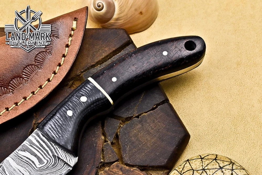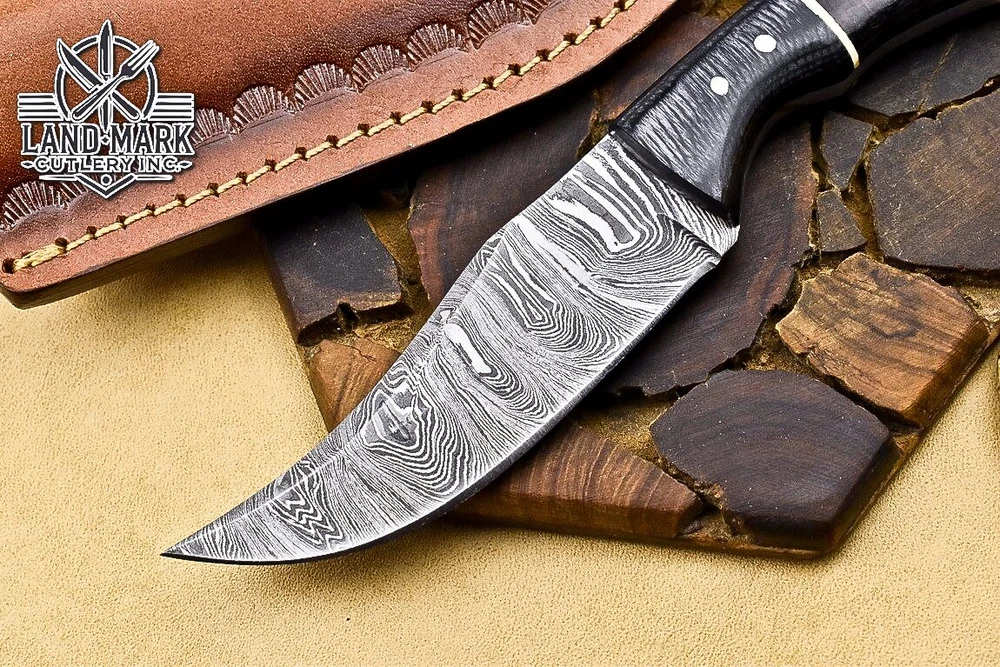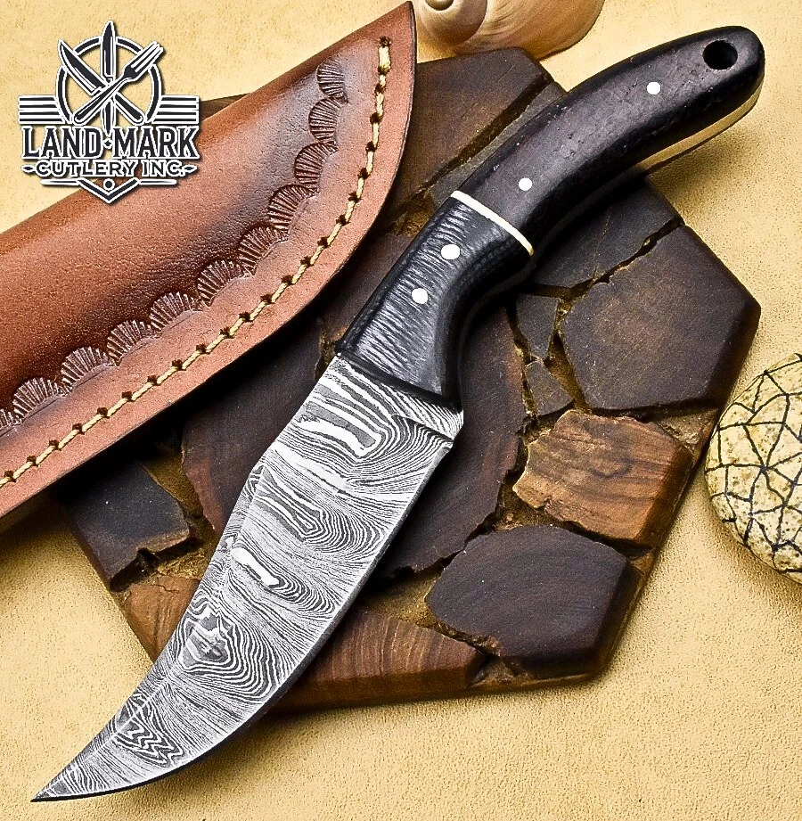 Custom Hand Made DAMASCUS STEEL HUNTING KNIFE WITH WOOD HANDLE We offer a shipping discount for More then one purchased . And discount will be apply on combine invoice, Discount will not apply on separate payment. ITEM DETAILS OVER ALL LENGTH 8.0 inches long (Approx) HANDLE LENGTH 4.0 inches long (Approx) BLADE LENGTH 4.0 inches long (Approx) BLADE HARDNESS 58-60 HRC Which Holds The Sharp Edge For Long Time. HANDLE BLACK HANDLE COVER LEATHER SHEATH This Awesome custom made KNIFE has a nice hand forged with the combination of 4340 & 1080 steel. HOW OUR DAMASCUS IS MADE: All our Damascus is real and not just an acid etch. Damascus is a mixture of 1080HC and 4340 nickel carbon. You heat them up together and then fold the bar over and over to get the desired layers, ours are 396 layers. Then you burn the blade in acid, and it turns the nickel satin color and the high carbon turns blackish gray. This is how the layers are exposed to show the layers of the new steel created coined "Damascus". All Damascus is acid etched to show the layers. If you high polish the metal it will be shinny satin like all steels. Only after you burn the sides of the blade with acid do you see the layers of the two steels. Makes sense? After we make our knives we high polish the handles and put an edge on the blade. The high polishing buffs off the acid burned layer of the handle, and the blade edge is sharpened and the acid burned edge becomes satin. You can re-burn the tang of the blade near the handles and the edge of the blade and it will show the layers once more. All our knives are hand made, durable and unique ***** YOU WILL RECEIVED THE SAME KNIFE Qality Standards Our Damascus blades are made from high quality non-stainless steels which rival or exceed any Damascus blade made from the 10 series with 4340. Our Damascus combination has taken years to perfect and has been tested under a variety of application which will offer professional performance in categories of toughness, strength (lateral stress) and edge honing and holding ability. In a 5 spot Rockwell test our blades will average near or close to 58 which offers a perfect balances between its toughness and strength.Our blades due to carbon content need to be regularly treated with wax and/or 3 in 1 oil to maintain its superior quality. Questions if you have any question feel free to send us message we aim to answer all questions within 24 hours Feedback If you are not satisfied with our service please contact us before leaving any negative or natural feedback. We will resolve all issues as quickly as possible. Disclaimer We are not responsible for any injuries associated with the use of our tools. Our products are intended for legal use only by responsible buyers. Therefore, we will not sell our products to anyone under the age of 18. Before bidding please check your country laws as some countries Custom don't allow this. If your purchase is held by Custom Authorities in your country/State we will not be responsible for that and no refund will be issued Shipping We offer a 20% shipping discount for More then one purchased . And discount will be apply on combine invoice, Discount will not apply on separate payment We ship within 24 hours after receiving complete payment but this can be delayed due to week ends or Governments and Religious Festivals . . This is beyond our control and we apologize for this inconvenience. Precautions Our Tools are very sharp so open and use them very carefully We are not responsible for any injuries associated with the use of our tools Tips to Care knife 1. NEVER STORE YOUR KNIFE FOR LONG TIME IN LEATHER SHEATH. 2. LEATHER CAN ABSORB WATER, WHICH WILL RUST THE KNIFE. 3. ALWAYS CLEAN THE BLADE AFTER USING WITH OIL OR WAX