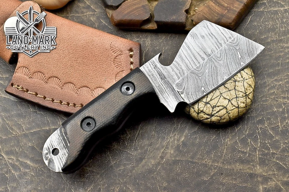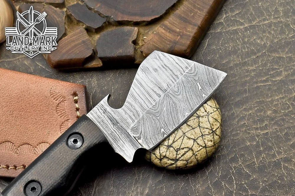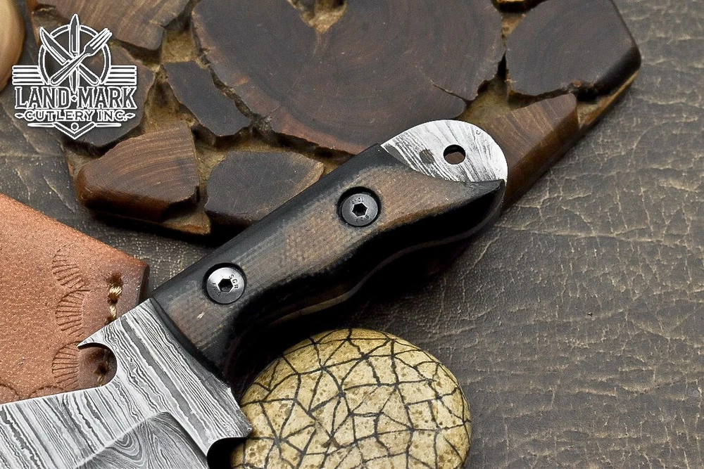 Custom Hand Made D2 STEEL HUNTING KNIFE WITH MICARTA HANDLE We offer a shipping discount for More then one purchased . And discount will be apply on combine invoice, Discount will not apply on separate payment. ITEM DETAILS OVER ALL LENGTH 3.0 inches long (Approx) HANDLE LENGTH 1.5 inches long (Approx) BLADE LENGTH 1.5 inches long (Approx) BLADE HARDNESS 58-60 HRC Which Holds The Sharp Edge For Long Time. HANDLE MICRTA COVER LEATHER SHEATH This Awesome custom made KNIFE has a nice hand forged with the combination of 4340 & 1080 steel. HOW OUR DAMASCUS IS MADE: All our Damascus is real and not just an acid etch. Damascus is a mixture of 1080HC and 4340 nickel carbon. You heat them up together and then fold the bar over and over to get the desired layers, ours are 396 layers. Then you burn the blade in acid, and it turns the nickel satin color and the high carbon turns blackish gray. This is how the layers are exposed to show the layers of the new steel created coined "Damascus". All Damascus is acid etched to show the layers. If you high polish the metal it will be shinny satin like all steels. Only after you burn the sides of the blade with acid do you see the layers of the two steels. Makes sense? After we make our knives we high polish the handles and put an edge on the blade. The high polishing buffs off the acid burned layer of the handle, and the blade edge is sharpened and the acid burned edge becomes satin. You can re-burn the tang of the blade near the handles and the edge of the blade and it will show the layers once more. All our knives are hand made, durable and unique ***** YOU WILL RECEIVED THE SAME KNIFE Qality Standards Our Damascus blades are made from high quality non-stainless steels which rival or exceed any Damascus blade made from the 10 series with 4340. Our Damascus combination has taken years to perfect and has been tested under a variety of application which will offer professional performance in categories of toughness, strength (lateral stress) and edge honing and holding ability. In a 5 spot Rockwell test our blades will average near or close to 58 which offers a perfect balances between its toughness and strength.Our blades due to carbon content need to be regularly treated with wax and/or 3 in 1 oil to maintain its superior quality. Questions if you have any question feel free to send us message we aim to answer all questions within 24 hours Feedback If you are not satisfied with our service please contact us before leaving any negative or natural feedback. We will resolve all issues as quickly as possible. Disclaimer We are not responsible for any injuries associated with the use of our tools. Our products are intended for legal use only by responsible buyers. Therefore, we will not sell our products to anyone under the age of 18. Before bidding please check your country laws as some countries Custom don't allow this. If your purchase is held by Custom Authorities in your country/State we will not be responsible for that and no refund will be issued Shipping We offer a 20% shipping discount for More then one purchased . And discount will be apply on combine invoice, Discount will not apply on separate payment We ship within 24 hours after receiving complete payment but this can be delayed due to week ends or Governments and Religious Festivals . . This is beyond our control and we apologize for this inconvenience. Precautions Our Tools are very sharp so open and use them very carefully We are not responsible for any injuries associated with the use of our tools Tips to Care knife 1. NEVER STORE YOUR KNIFE FOR LONG TIME IN LEATHER SHEATH. 2. LEATHER CAN ABSORB WATER, WHICH WILL RUST THE KNIFE. 3. ALWAYS CLEAN THE BLADE AFTER USING WITH OIL OR WAX