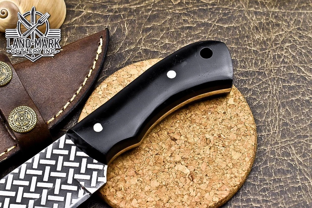 Custom Hand Made DAMASCUS STEEL HUNTING KNIFE WITH BLACK HANDLE We offer a shipping discount for More then one purchased . And discount will be apply on combine invoice, Discount will not apply on separate payment. ITEM DETAILS OVER ALL LENGTH 8.0 inches long (Approx) HANDLE LENGTH 4.0 inches long (Approx) BLADE LENGTH 4.0 inches long (Approx) BLADE HARDNESS 58-60 HRC Which Holds The Sharp Edge For Long Time. HANDLE BLACK COVER LEATHER SHEATH This Awesome custom made KNIFE has a nice hand forged with the combination of 4340 & 1080 steel. HOW OUR DAMASCUS IS MADE: All our Damascus is real and not just an acid etch. Damascus is a mixture of 1080HC and 4340 nickel carbon. You heat them up together and then fold the bar over and over to get the desired layers, ours are 396 layers. Then you burn the blade in acid, and it turns the nickel satin color and the high carbon turns blackish gray. This is how the layers are exposed to show the layers of the new steel created coined "Damascus". All Damascus is acid etched to show the layers. If you high polish the metal it will be shinny satin like all steels. Only after you burn the sides of the blade with acid do you see the layers of the two steels. Makes sense? After we make our knives we high polish the handles and put an edge on the blade. The high polishing buffs off the acid burned layer of the handle, and the blade edge is sharpened and the acid burned edge becomes satin. You can re-burn the tang of the blade near the handles and the edge of the blade and it will show the layers once more. All our knives are hand made, durable and unique ***** YOU WILL RECEIVED THE SAME KNIFE Qality Standards Our Damascus blades are made from high quality non-stainless steels which rival or exceed any Damascus blade made from the 10 series with 4340. Our Damascus combination has taken years to perfect and has been tested under a variety of application which will offer professional performance in categories of toughness, strength (lateral stress) and edge honing and holding ability. In a 5 spot Rockwell test our blades will average near or close to 58 which offers a perfect balances between its toughness and strength.Our blades due to carbon content need to be regularly treated with wax and/or 3 in 1 oil to maintain its superior quality. Questions if you have any question feel free to send us message we aim to answer all questions within 24 hours Feedback If you are not satisfied with our service please contact us before leaving any negative or natural feedback. We will resolve all issues as quickly as possible. Disclaimer We are not responsible for any injuries associated with the use of our tools. Our products are intended for legal use only by responsible buyers. Therefore, we will not sell our products to anyone under the age of 18. Before bidding please check your country laws as some countries Custom don't allow this. If your purchase is held by Custom Authorities in your country/State we will not be responsible for that and no refund will be issued Shipping We offer a 20% shipping discount for More then one purchased . And discount will be apply on combine invoice, Discount will not apply on separate payment We ship within 24 hours after receiving complete payment but this can be delayed due to week ends or Governments and Religious Festivals . . This is beyond our control and we apologize for this inconvenience. Precautions Our Tools are very sharp so open and use them very carefully We are not responsible for any injuries associated with the use of our tools Tips to Care knife 1. NEVER STORE YOUR KNIFE FOR LONG TIME IN LEATHER SHEATH. 2. LEATHER CAN ABSORB WATER, WHICH WILL RUST THE KNIFE. 3. ALWAYS CLEAN THE BLADE AFTER USING WITH OIL OR WAX