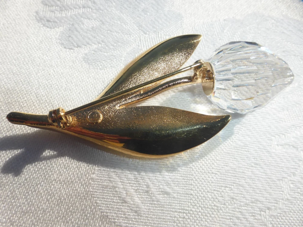 BEAUTIFUL MADE IN AUSTRIA SWAROVSKI CRYSTAL FLOWER BROOCH IN GOLD TONES NEW