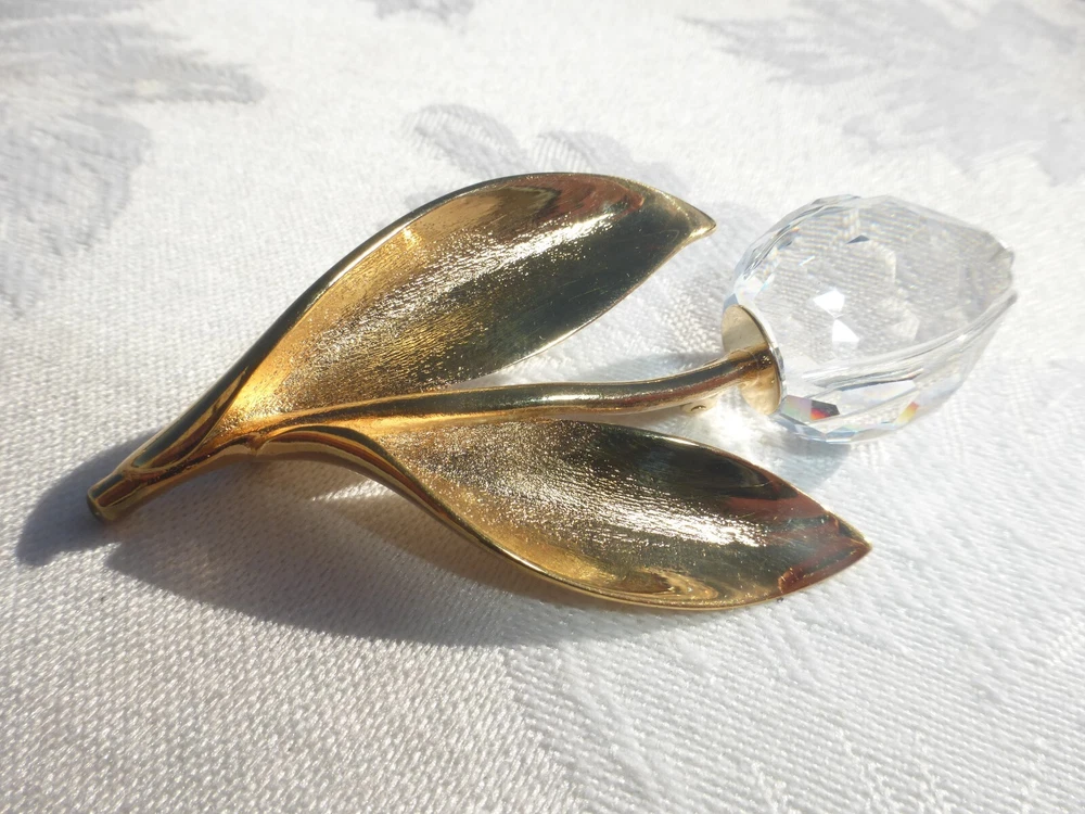 BEAUTIFUL MADE IN AUSTRIA SWAROVSKI CRYSTAL FLOWER BROOCH IN GOLD TONES NEW Great Condition at 3" inches and signed. I LOVE TO COMBINE TO SAVE ON SHIPPING! FEEL FREE TO BID AWAY AND HAVE FUN, WHEN READY EMAIL ME IF YOU WIN MULTIPLE AUCTIONS SO I CAN SEND A REVISED SAVINGS INVOICE... Thanks for your business and considerations and keep a watchful eye I have some amazing goodies coming!