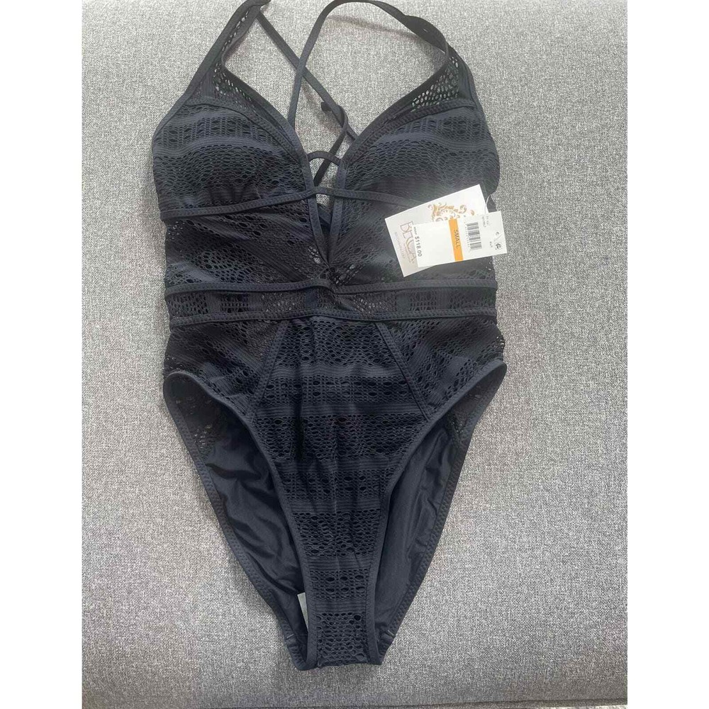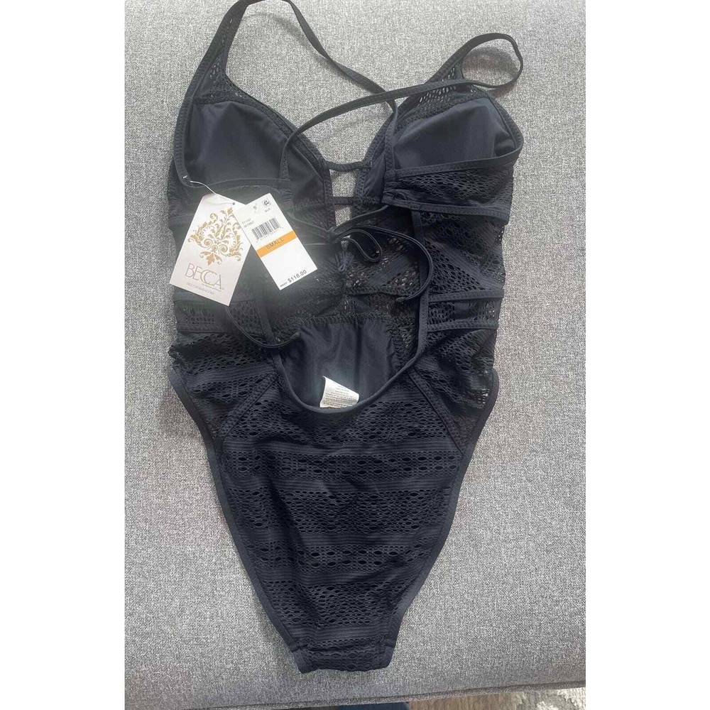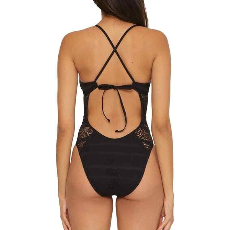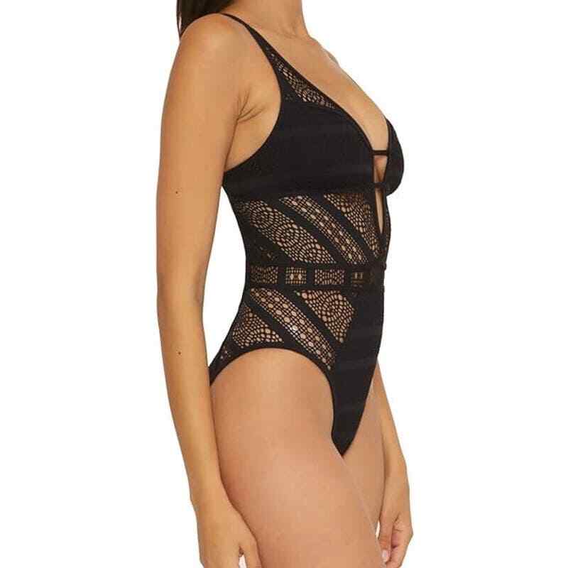 Finished with crochet detailing throughout, this one-piece keyhole swimsuit from Becca will have you looking fierce by the pool. Moderate bottom coverage Lined Plunging neckline Removable soft cups; no underwire Pull-on styling; adjustable shoulder straps Imported Crochet detailing throughout