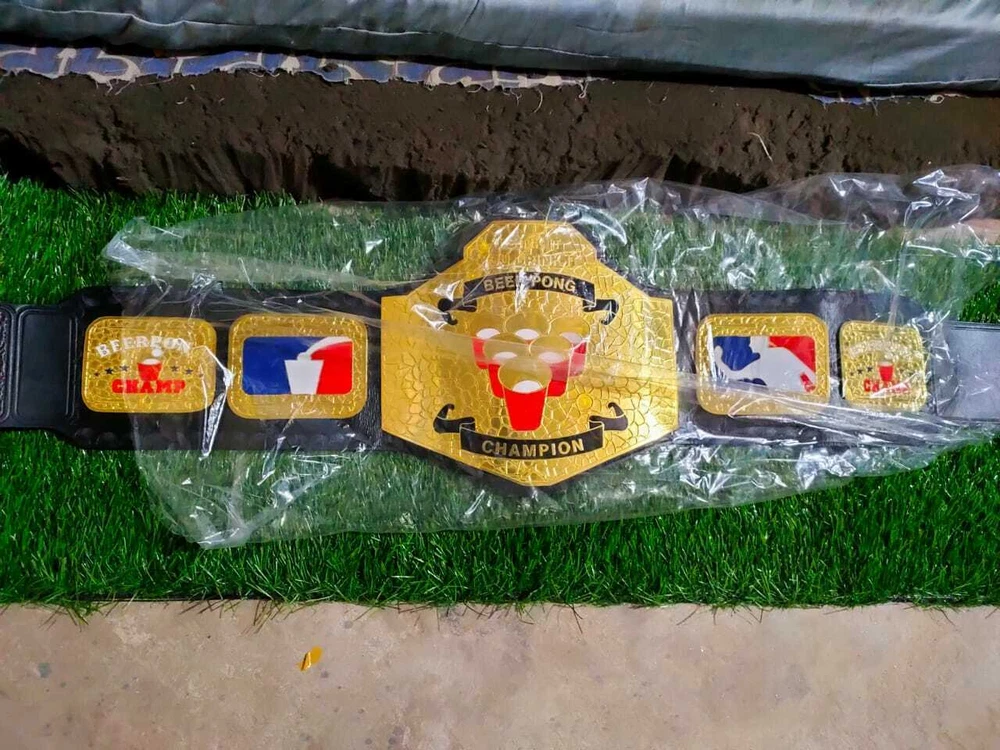 Welcome to our shop ------------------------------------------- We are specialist in manufacturing handmade products:: Our wide range of products include: >>>>Championship Belts WWE | WWF | AEW | UFC | WBC | WCW Product Description *** BEER PONG CHAMPIONSHIP BELT BLACK LEATHER STRAP ADULT SIZE *** Plate Metal: Brass (Zinc available on request with additional cost) Strap: 100% Leather Largest Waist Size: Fits upto 46'' Belt Length: ~50" Weight: 6.17 lbs | 2.81 Kg Plate Thickness: 2mm (4mm Version available on demand with additional cost) ::The belt is well crafted and manufactured to meet the quality demands of fans:: Get your hands on this marvelous piece now! Note: If you need further details kindly inbox us, we will try to be as responsive as possible. ------------------------------------------- Return Policy: Generally we don't have much complains on our products and we make sure to 100% satisfy our clients. We send the product in well Bubble Wrapped packaging so there is highly unlike chance of getting damaged item. In case there is a damage, we will try to give partial refund or you can ask for full refund within 30 days after returning the belt to origin. NOTE: 1. If you have placed the order by mistake or you have purchased a wrong item then we are not going to refund that. 2. Buyer will pay the shipping fee of returning the belt. ------------------------------------------- Happy Shopping! :)