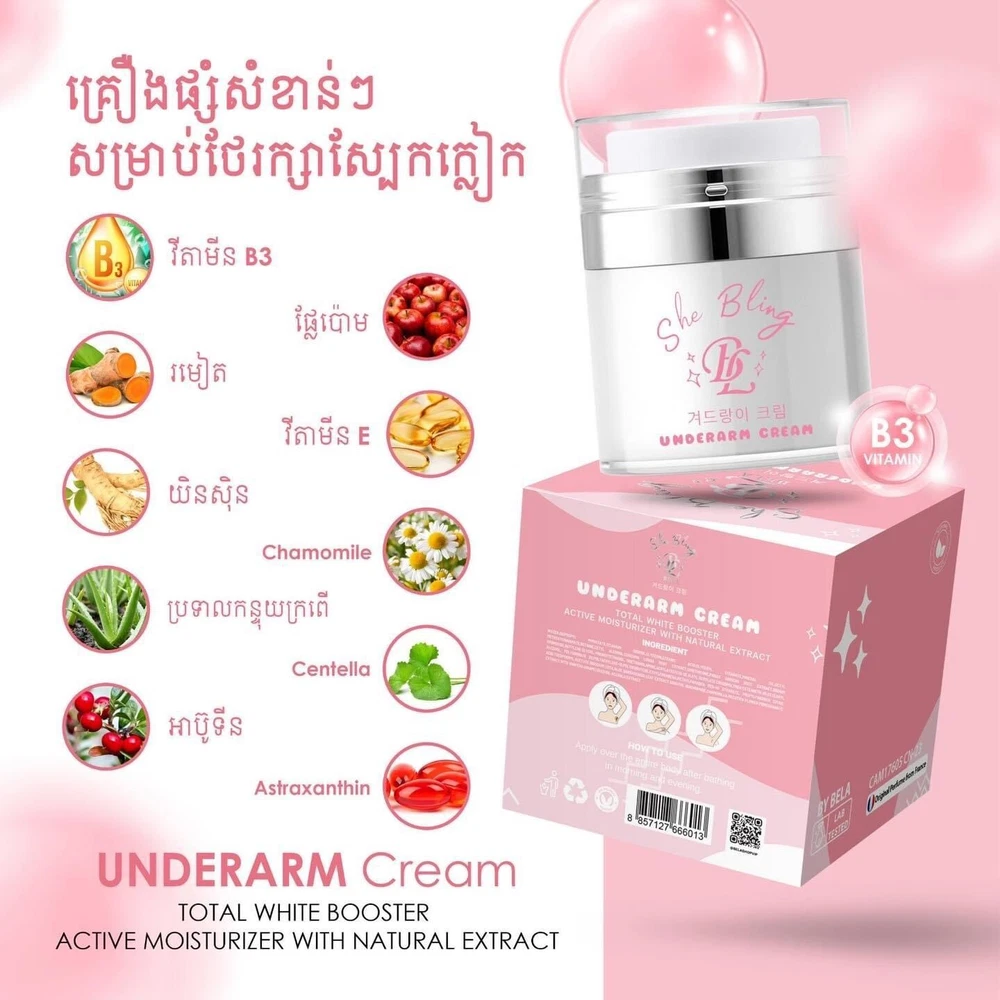 BELA Underarms Whitening Cream បេឡា លេក្លៀកទឹកអប់ ជាប់24 ម៉ោង ( 1 B / 15 g )