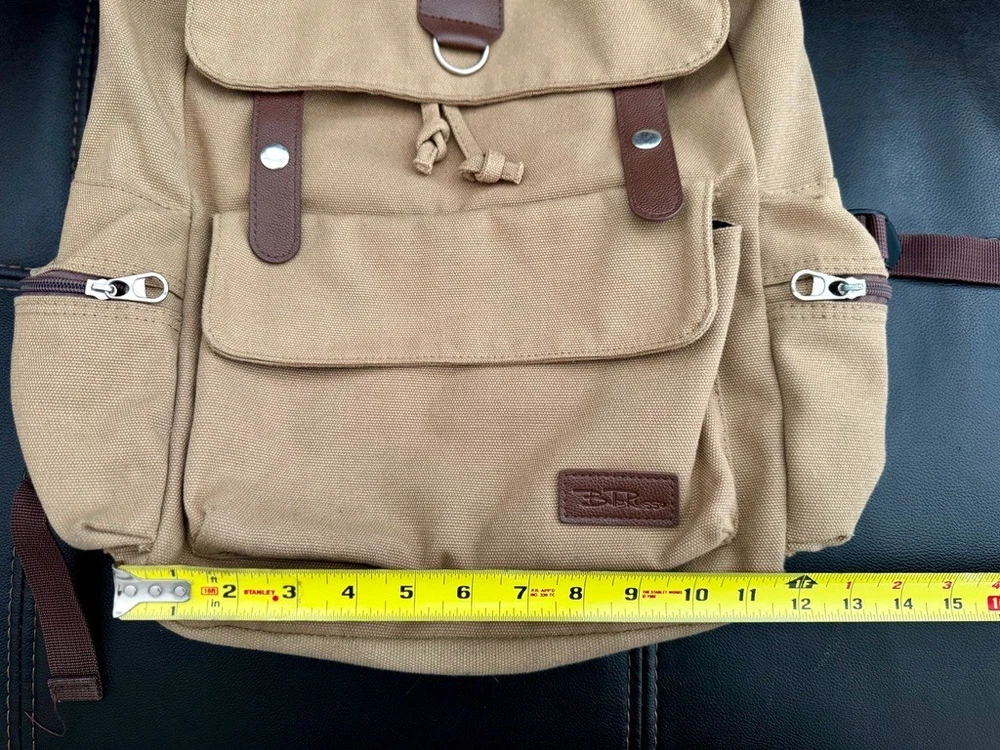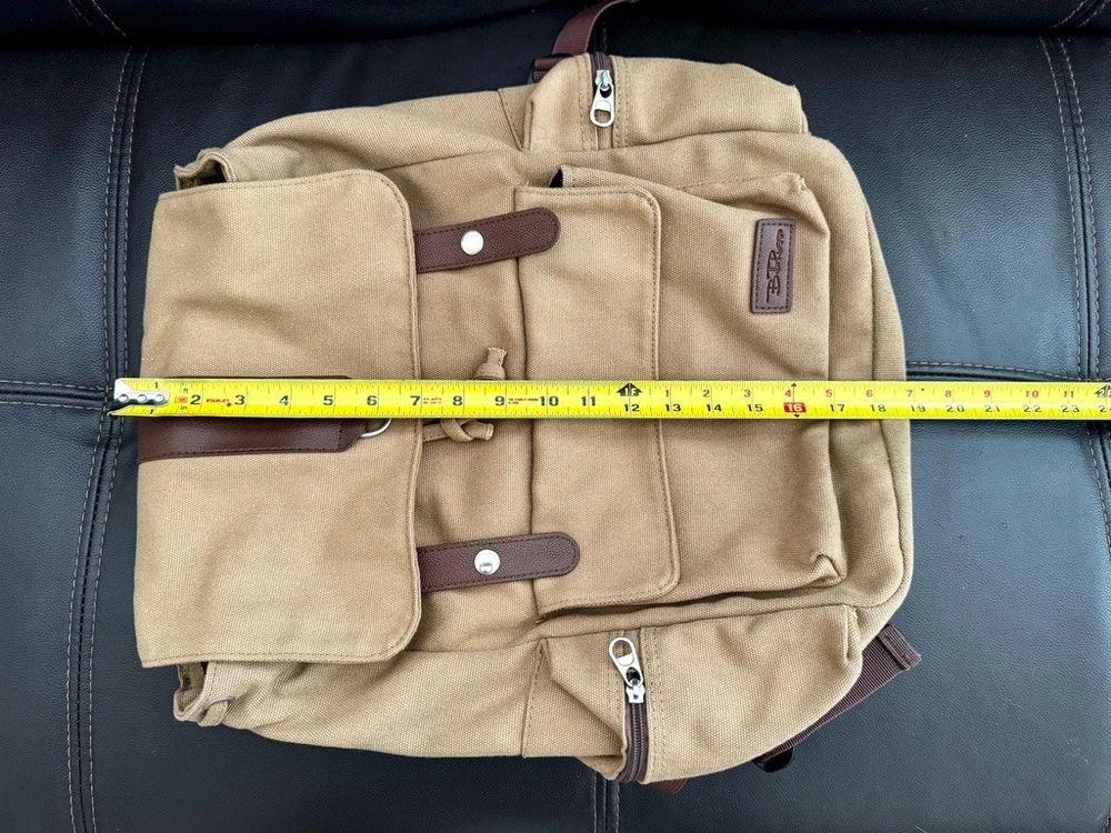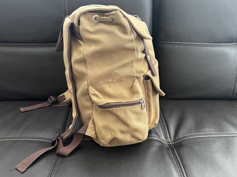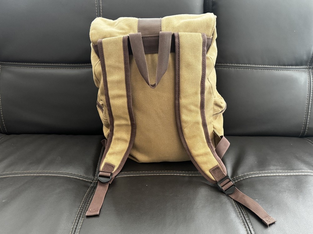[BELLA RUSSO] Khaki Canvas Backpack – 18” x 12” x 5” – Durable, & Travel Ready Explore with ease and style using the Bella Russo Khaki Canvas Backpack, an essential accessory for any journey. Its robust canvas material ensures durability, while the neutral khaki color offers a versatile look that complements any outfit. Designed with functionality in mind, this backpack features adjustable straps for a comfortable fit, an expandable body for extra storage, and a classic flap design with secure snaps. Perfect for daily use or travel, it’s carry-on friendly and ideal for school, hiking, or city life. Product Features: Color: Khaki Beige with Brown Accents Size: 18” H x 12” W x 5” D Material: Heavy-Duty Canvas with Faux Leather Details Adjustable Shoulder Straps – Comfortable for extended wear Secure Flap Closure – Double snap buttons with drawstring underneath Spacious Main Compartment – Holds books, laptops, clothes, and more Two Side Zipper Pockets – Easy access for smaller items Front Utility Pocket – Great for travel essentials or everyday carry Loop Ring – Attach keychains or gear Condition: Gently used in excellent condition. No rips or visible wear. Please refer to the photos for a detailed view. We value transparency and are committed to ensuring your complete satisfaction with your purchase. Shipping: Ships quickly within the USA. Contact us for international shipping. Returns: No returns accepted. Please read all details and ask any questions before purchasing. Check Out Our Other Items! Be sure to explore our eBay store for more unique finds, everyday essentials, and vintage goods. Don’t miss out on this opportunity to own the [BELLA RUSSO] Khaki Canvas Backpack – 18” x 12” x 5” – Durable, & Travel Ready Please Note: Colors may vary slightly due to lighting and monitor settings. Feel free to contact us with any questions or for additional photos. DISCLAIMER: By purchasing this item, the buyer acknowledges and agrees that the seller is not responsible for any damages, injuries, or malfunctions resulting from the use or display of this product. The buyer assumes all responsibility for proper care and handling. Please review all details carefully before purchase. No refunds or returns will be accepted for improper use or handling.