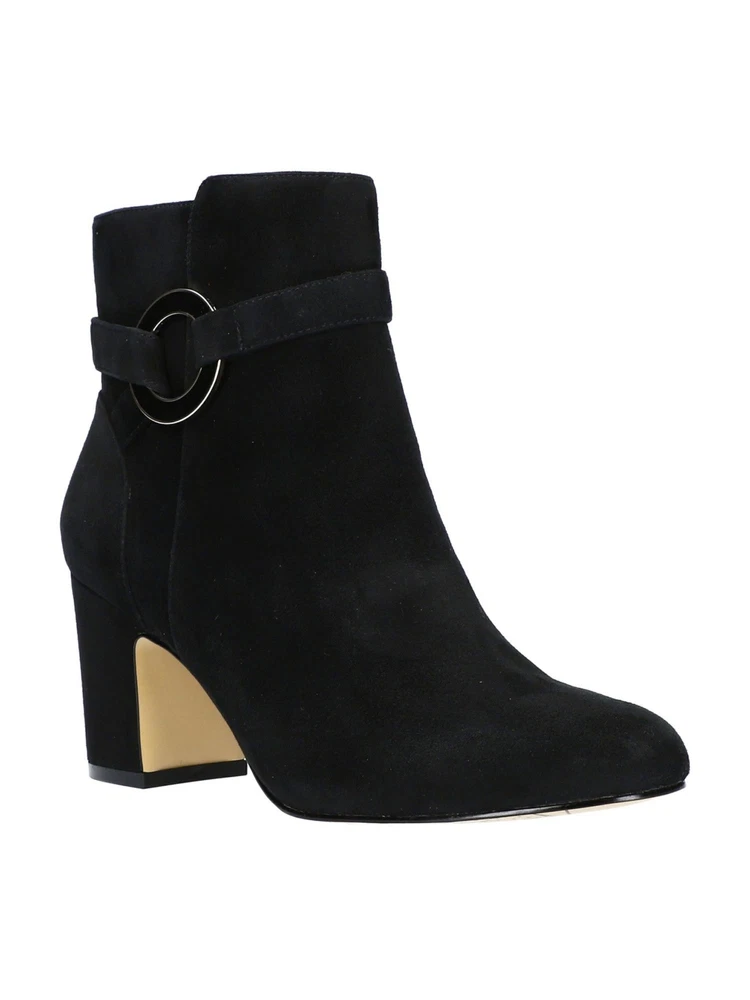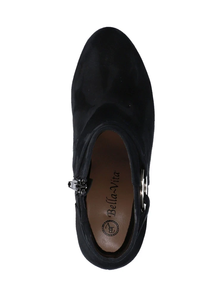 BELLA-VITA Womens Black O-Ring Round Toe Block Heel Leather Booties 6.5