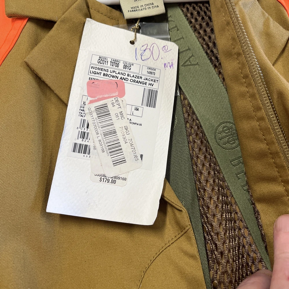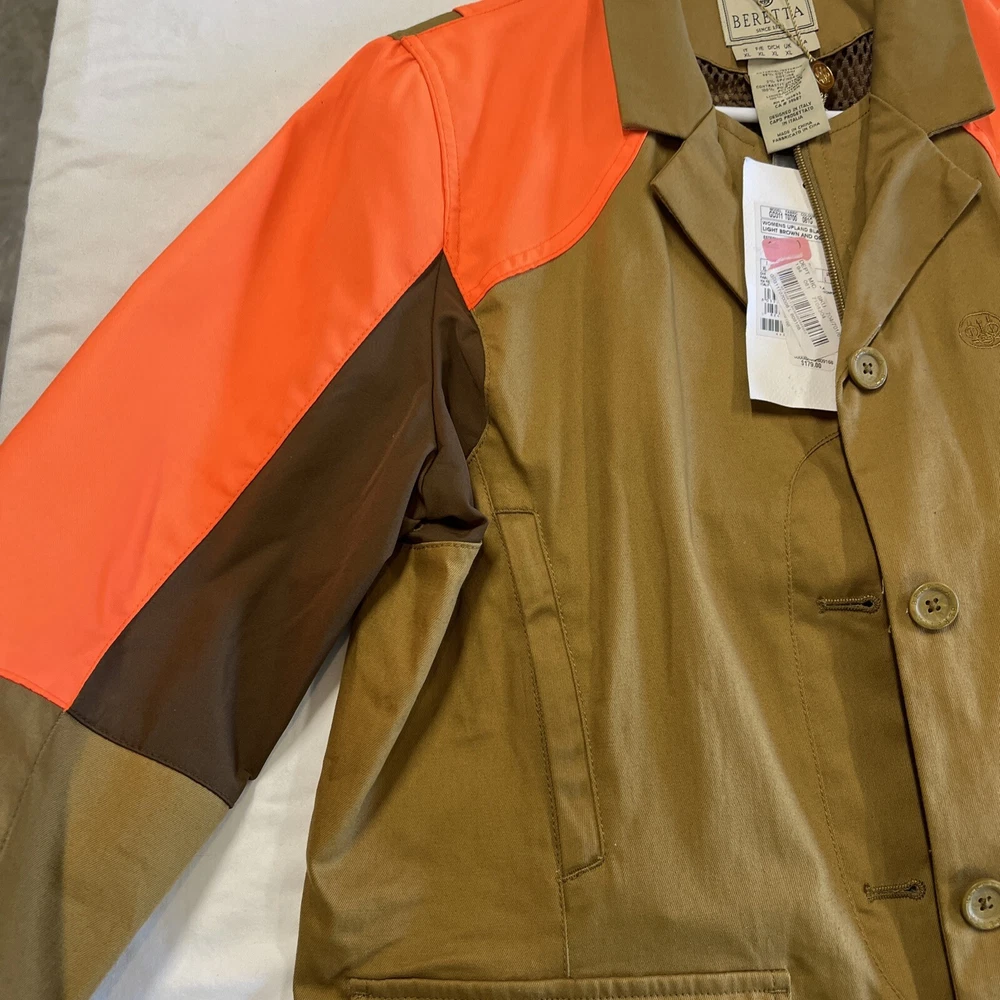 BERETTA WOMENS BLAZER JACKET UPLAND, SIZE LARGE, BROWN & ORANGE BIRD HUNTING