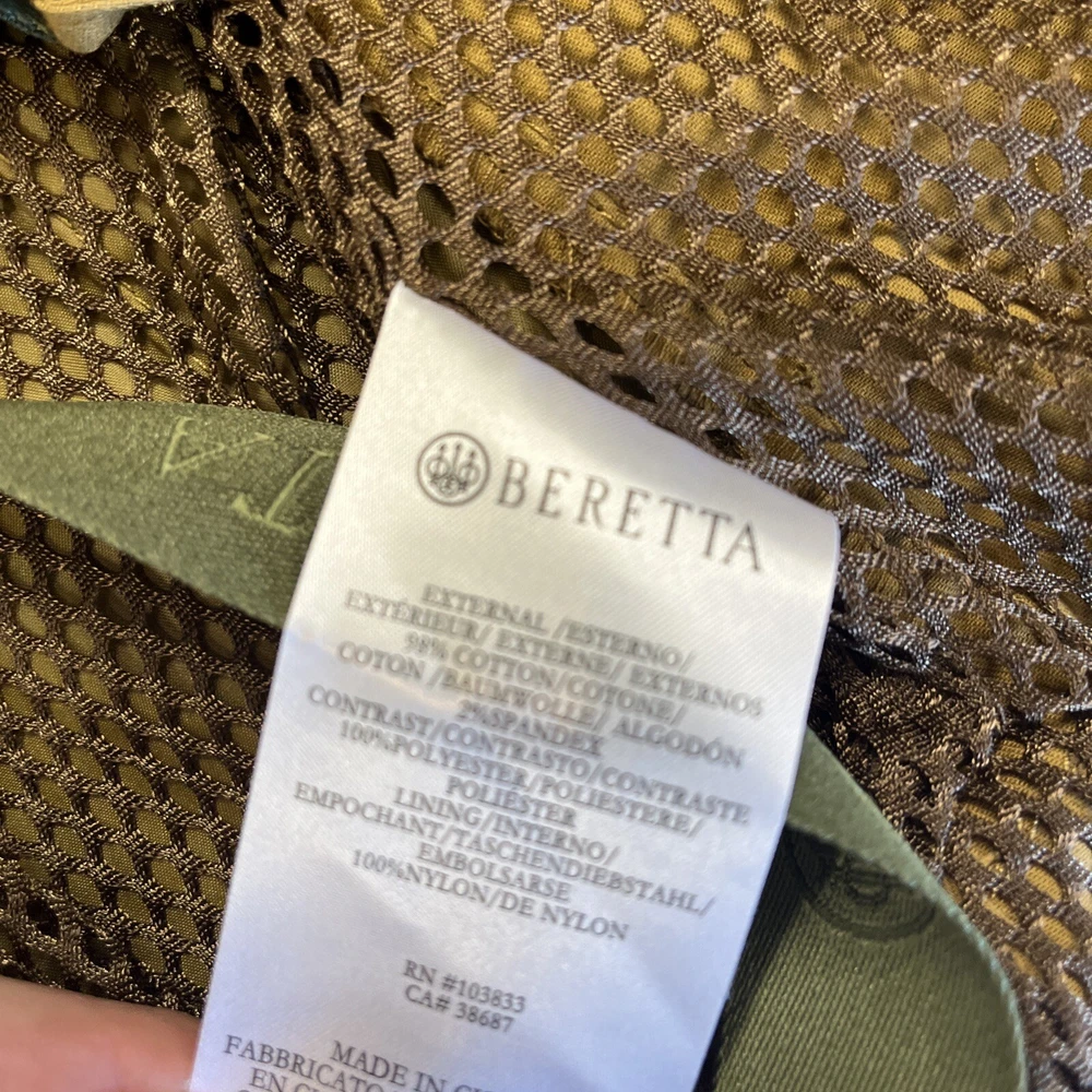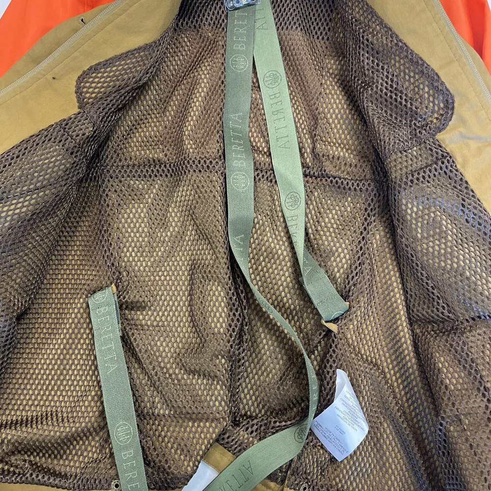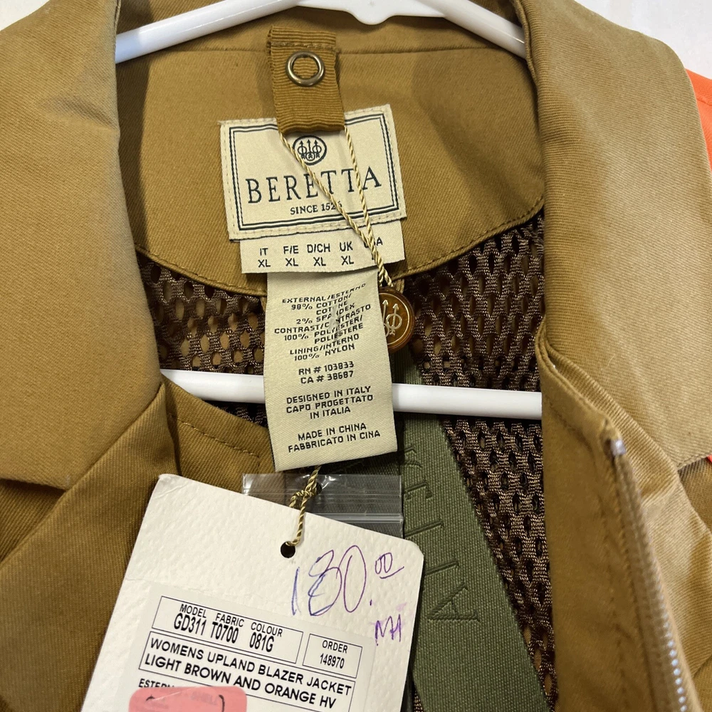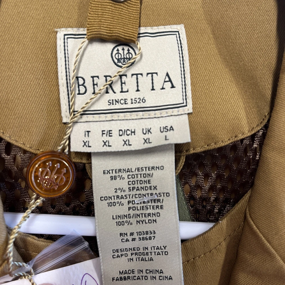 Size: L Color: Brown Brand: Beretta Features: Loop at collar for Bis Beretta Interactive System, High visibility orange fabric on shoulders and arms, Sleeve with stretch fabric insert, Armpit with ventilation hole, Hand warmer chest pockets with tape to fix the flap of front pock, High visibility orange fabric on the back, Back bi-swing, Double entrance game bag with waterproof lining on the back Material: 98% COTTON, 2% SPANDEX Size Type: Regular gtin13: 8033854917769 UPC: 8033854917769 Gender: Women