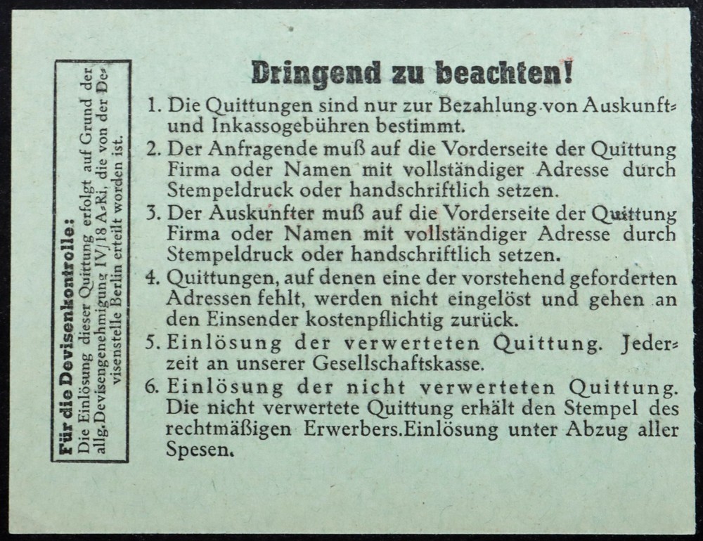 BERLIN 1940s"C. Regenhardt" 0.40 Reichsmark Commercial Fee Voucher Stuttgart (not Notgeld) All notes are guaranteed genuine. You will receive exactly the note(s) in the photos. Orders are shipped well-protected, usually within 1 business day. FREE US SHIPPING is included for all items. INTERNATIONAL SHIPPING : $15 for unlimited combined items (except larger/heavier items where noted).