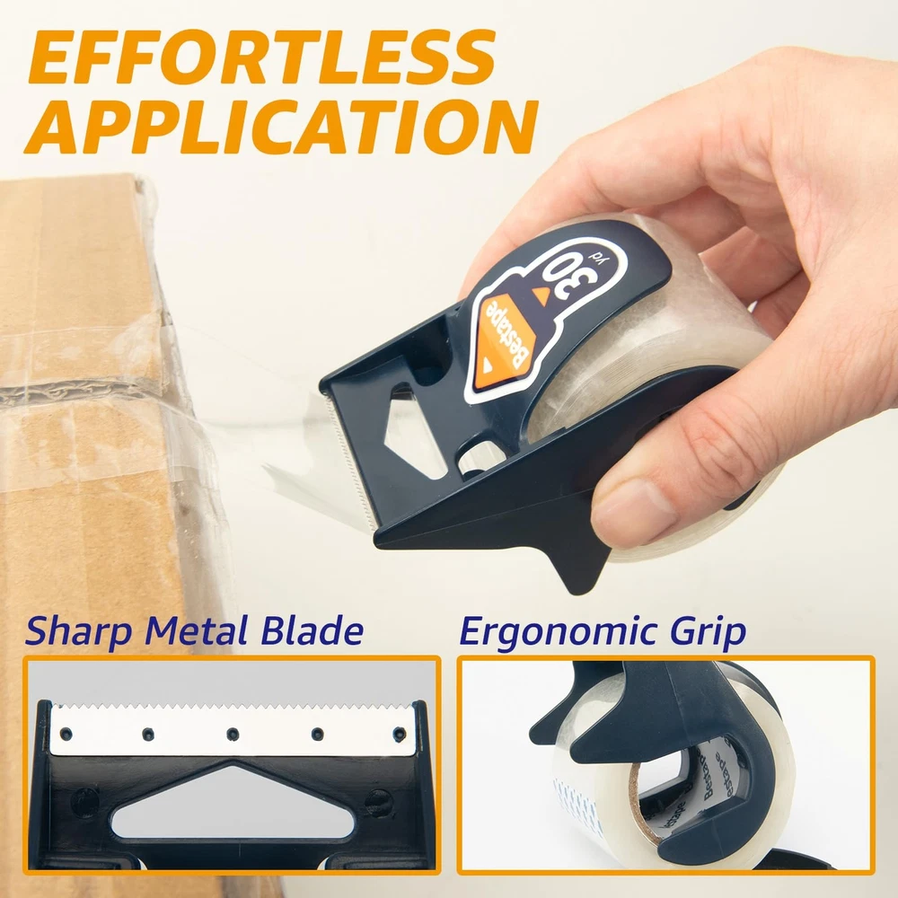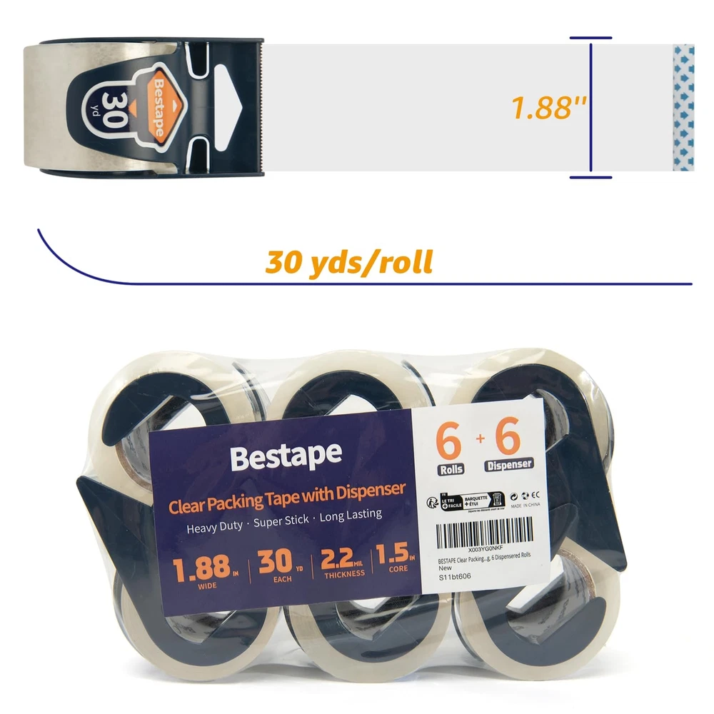 BESTAPE self adhesive hook and loop sticky back tape fastener The hook and loop self adhesive tape is perfect for fastening with simple peel and stick application, temperature resistant & waterproof adhesive can be used for indoor or outdoor applications. Key Features: 100% nylon material Powerful upgrade adhesive tape Hook loop tape removes and sticks back on easily Fit for different clean flat surfaces: glass, metal, plastics, wood, tile etc. Widely used for school projects, organization around the home, office and garage. Instructions: 1. Clean and dry surface before use. 2. Peel tape from fastener and press firmly into place. 3. Adhesive reaches maximum strength after 24 hours. 4. For Heavy duty and industrial applications use more surface area for maximum adhesion. Note: Continued exposure to full sunlight can damage fastener. Not recommended for fabrics, paint wall or underwater use. ๐๐ง๐ค๐๐ช๐๐ฉ ๐๐๐ฏ๐: Total 6 rolls of clear packaging tape with 6 free dispensers, 180yds. Each roll of tape is 1.89'' x 30yds, weight is 0.24lb, which is portable to carry around. ๐๐ง๐๐ข๐๐ช๐ข ๐๐ช๐๐ก๐๐ฉ๐ฎ: Different from other yellowish tapes in market, our packaging tape is more transparent and won't obscure important details on your packaging or labels. Good adaptability, can maintain stickness in the high or low temperature for storage and shipping. ๐๐๐จ๐ฎ ๐ฉ๐ค ๐๐จ๐ & ๐ฟ๐ช๐ง๐๐๐ก๐: The dispenser has sharp metal cutter which makes it to cut the tape without any difficulty, making it convenient and saving your time when packaging items. The packing tape is very good in thickness and toughness to offer excellent holding power for packaging and shipping and will not split or rip during application. ๐๐๐๐ ๐ผ๐ฅ๐ฅ๐ก๐๐๐๐ฉ๐๐ค๐ฃ๐จ: This packing tape with dispenser can be used in schools, offices, factories, warehouses and other packaging and transportation industries. and can also be used as an adhesive to remove dust from clothing and pet hair, meeting postal, courier, shipping regulations for shipping and packaging, bringing convenience to life. ๐ผ๐๐ฉ๐๐ง-๐๐๐ก๐๐จ ๐๐ช๐๐ง๐๐ฃ๐ฉ๐๐: We emphasize both high quality and leading after-sale customer service. Any issue, just contact us via e-mail through your buyer center to enjoy an efficient solution.