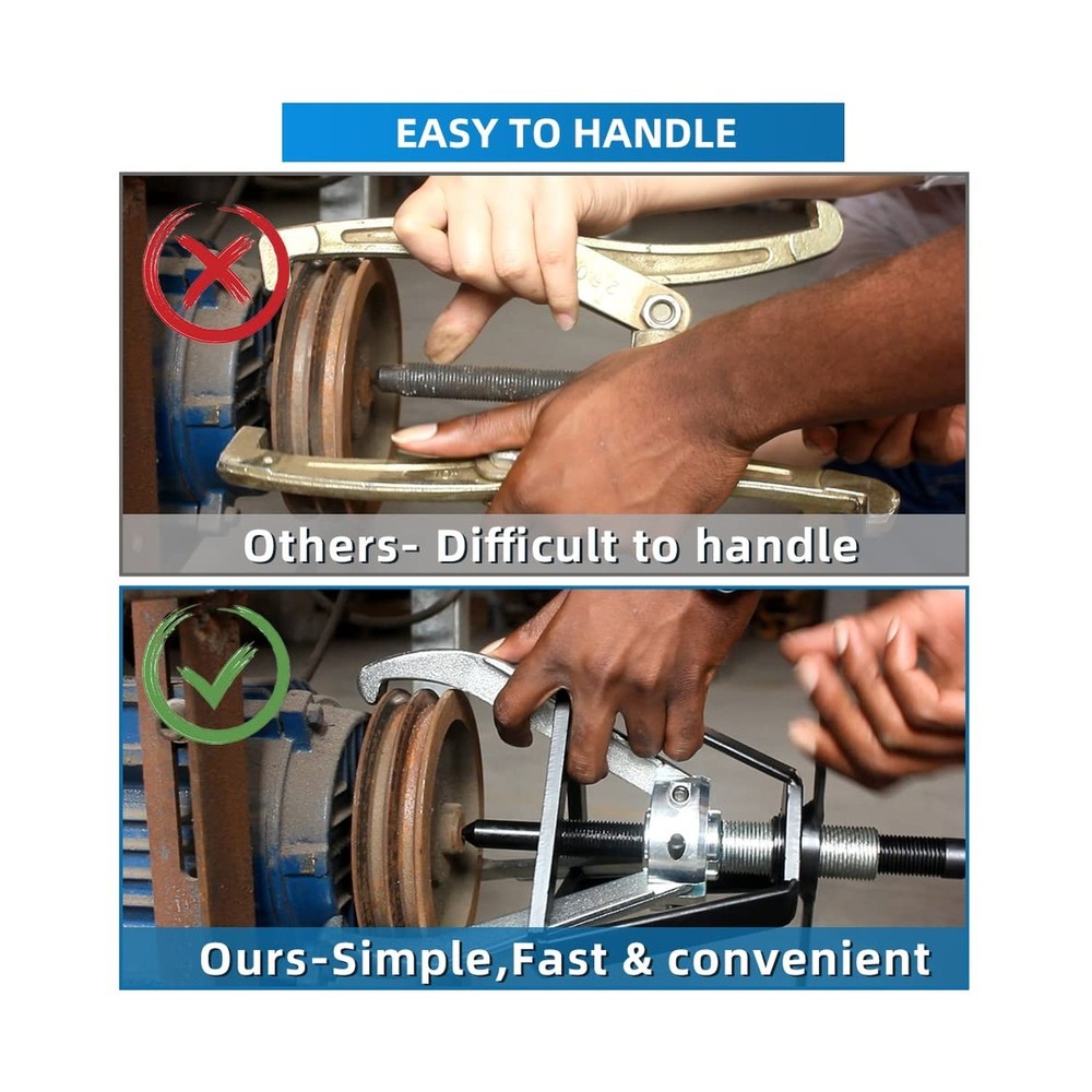 BESTOOL 3 Jaw Gear Puller,5 Ton Pulley Puller Tool, Removal Tool for Gears, Pulley, Flywheel Description Features: Application : 3 jaw gear puller is suitable for extracting shaft-fitted parts, including bearings, wheels, bushings, gears, and pulleys. Design : Three-jaw design balances the pulling force well, and claws are precisely machined to give a non-slip and secure grip on the gears. Make it deal for pulling work in confined areas. Material : This 3-jaw removal tool is made of steel for increased strength, provides maximum strength and longevity to the gear puller. Feature : Manual Puller structure has the same load distribution, which can be securely clamped and concentrically pulled. The three-jaw gear puller evenly distributes the tension and protects the gear. Slim tie rods, steel center bolts, and apex threads Can easily grasp and enter narrow spaces. Specifications : The longest distance from the screw tip to the claw hook: 95mm/3.74 inch . Spread Range: 3.9 to 7.9 INCHES . Pull Capacity: 5 Ton. Reach: 11.2 to 14.9 INCHES Product Details: Manufacturer: ‎BESTOOL PROFESSIONAL GARAGE TOOLS & EQUIPMENT Brand: ‎BESTOOL PROFESSIONAL GARAGE TOOLS & EQUIPMENT Item Weight: ‎8.38 pounds Package Dimensions: ‎15.15 x 10.39 x 9 inches Item model number: ‎SZLM5T001P Manufacturer Part Number: ‎SZLM5T001P Date First Available: February 9, 2022 Delivery We Do Not Ship Outside of the Continental US. Return Policy All items qualify for returns within 30 days of receipt. Seller is responsible for return shipping on any item that is not damaged. Feedback We take our reputation seriously, we buy and sell online, so we understand the value of trust. If you are unsatisfied with your order, please contact us and we will work with you to resolve it to your satisfaction.