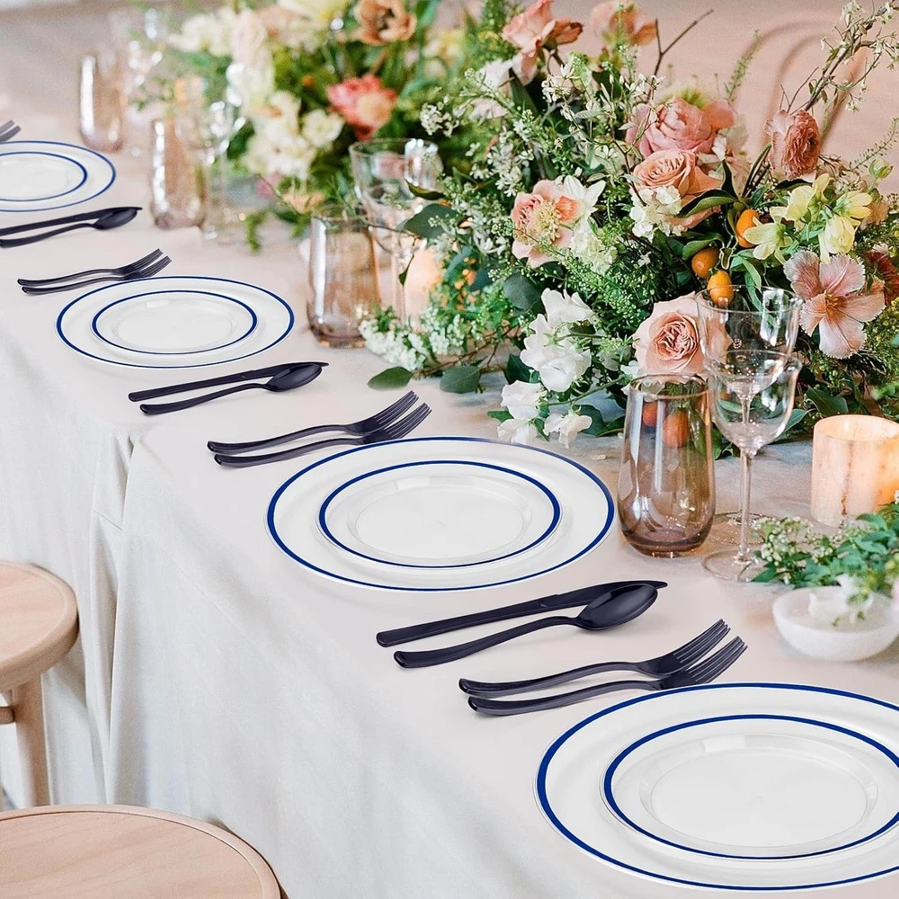 BESTSTAR 200PCS Blue and Clear Plastic Plates, Blue Disposable Plate Set with 100 Dinner Plate and 100 Dessert Plates for Party, National Day. Please check out my other listings — I add new items daily. Thank you!