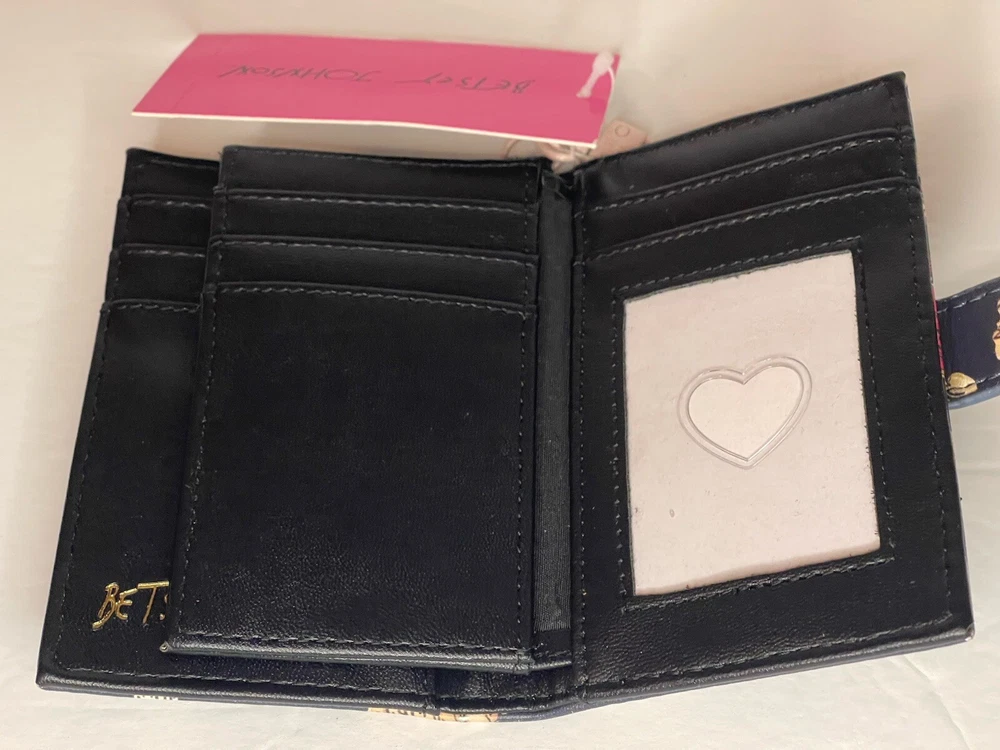 Betsey Johnson Charcoal Card Case Wallet W/ Key Ring French Desserts Print NWT