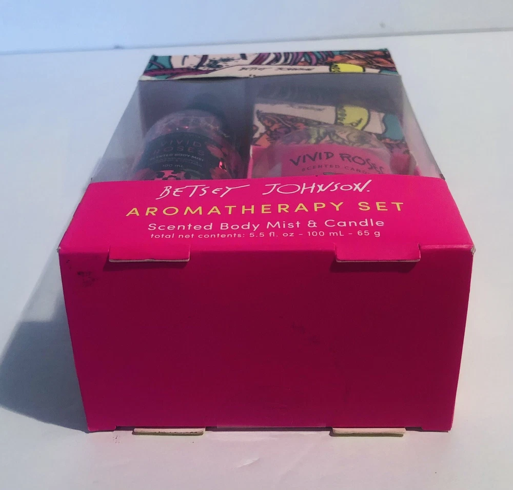 BETSEY JOHNSON Aromatherapy Set Scented Vivid Roses Body Mist & Candle. Condition is Brand New With Open Box. Comes with everything you see in the pictures only. Please view pictures to evaluate for yourself. Shipped via USPS Ground Advantage.