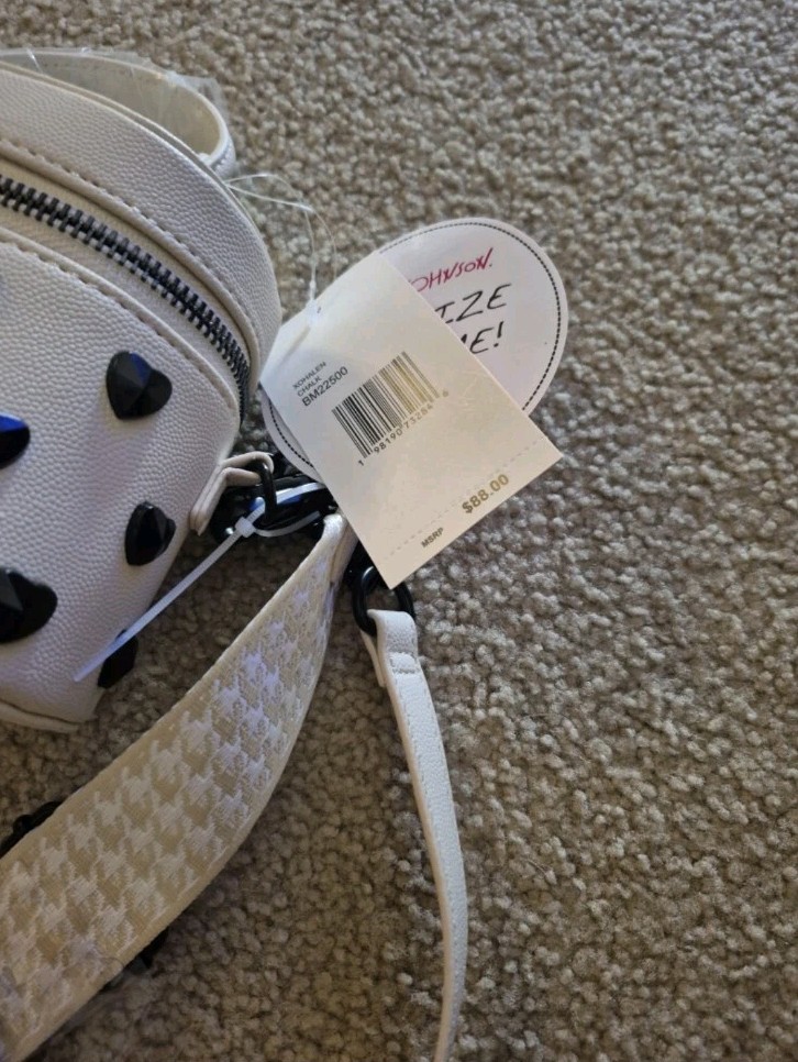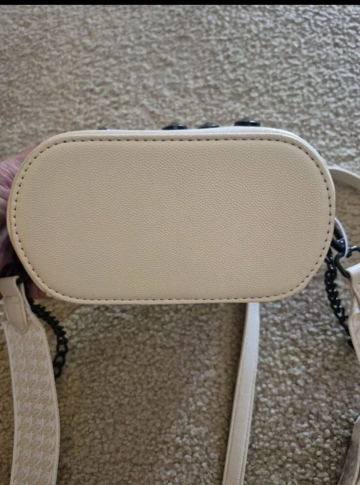 Brand: Betsey Johnson Exterior Material: Faux Leather Department: Women Exterior Color: Chalk Accents: Studded Model: BETSEY XO Style: Crossbody
