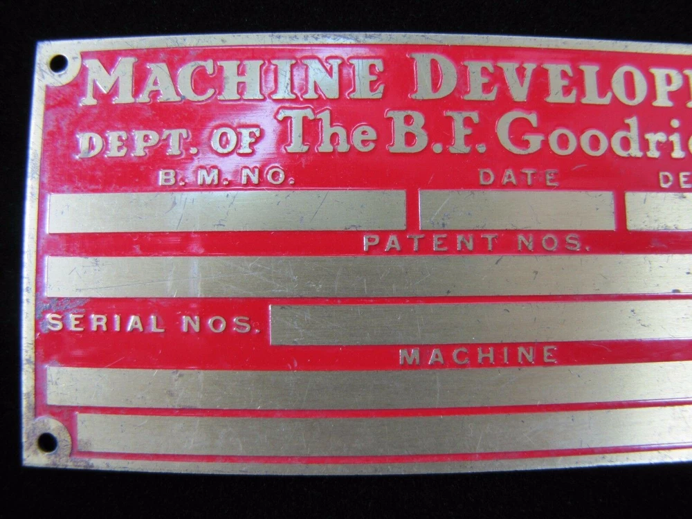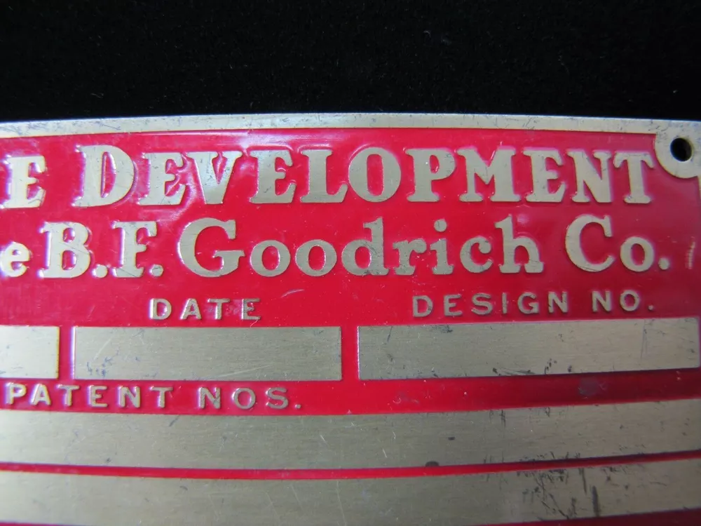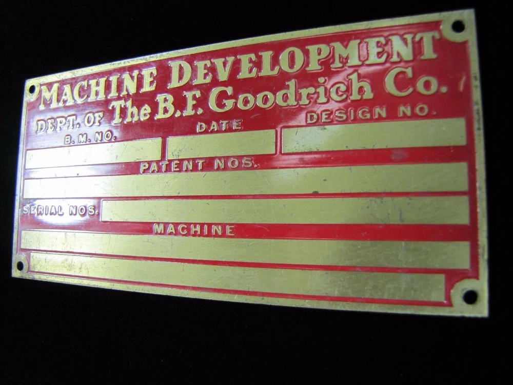 -BFG Tire Company Piece- Machine Development Dept of The B.F. Goodrich Co. Old Brass Nameplate Small Sign Equipment Tag please view all pictures for more information shows some wear with age noted measures approximately 2 1/8" by 4 3/8" check our store for more advertising items available for private inspection by appointment please view all pictures for more information and to judge condition for yourself. wear with age and use. please ask all questions before end of auction. available for private inspection. please feel free to contact us with any pertinent questions pertaining to the item. follow us and add us to your favorite sellers, we are always adding new items in our store. thank you for looking -dr24.dp- *AGED2PERFECTIONSTORE* SAVE US TO YOUR FAVORITES - CHECK BACK OFTEN, NEW ITEMS LISTED EVERY WEEK PLEASE NOTE: SHIPPING ONLY ON AUCTIONS NO LOCAL PICK UP AVAILABLE WE COMBINE/LOWER SHIPPING AS POSSIBLE ON MULTIPLE PURCHASES - ASK OR MESSAGE US FOR A COMBINED INVOICE BEFORE PAYING, ITEMS MUST BE PAID FOR UNDER SAME INVOICE FOR DISCOUNT *AGED2PERFECTIONSTORE* - FIND US AT AGED2PERFECTIONSTORE & AGED2PERFECTIONSTORE1&2