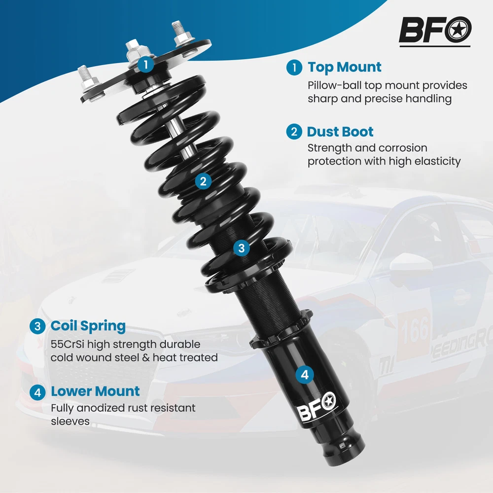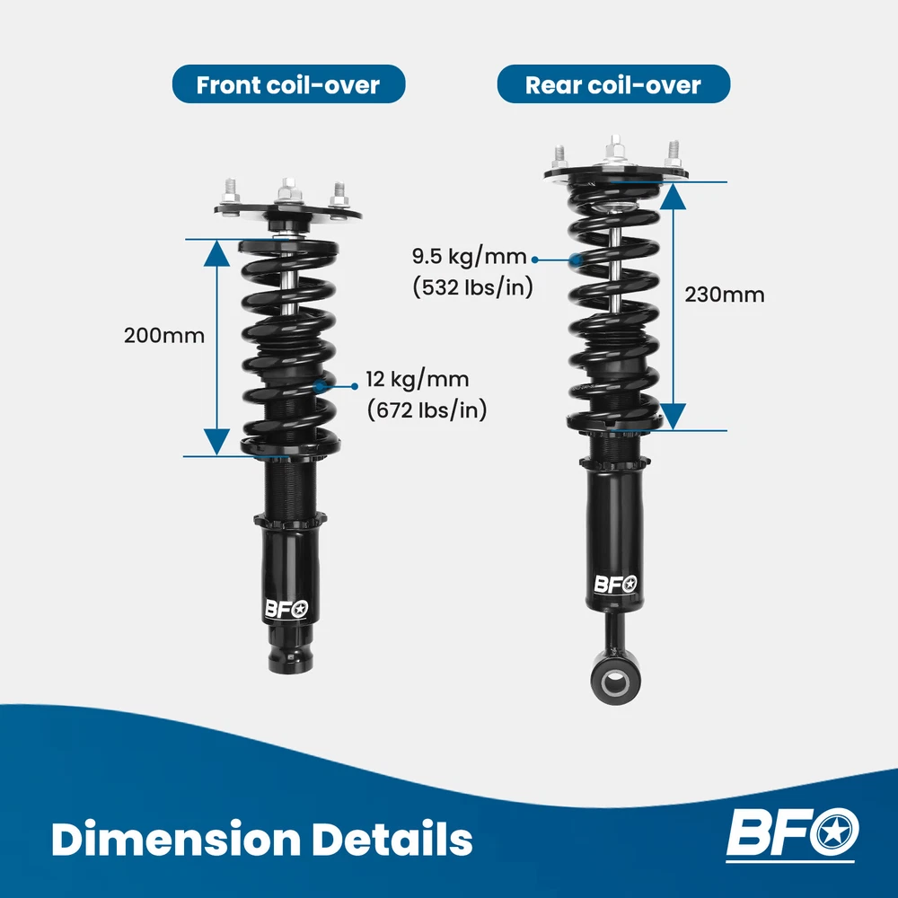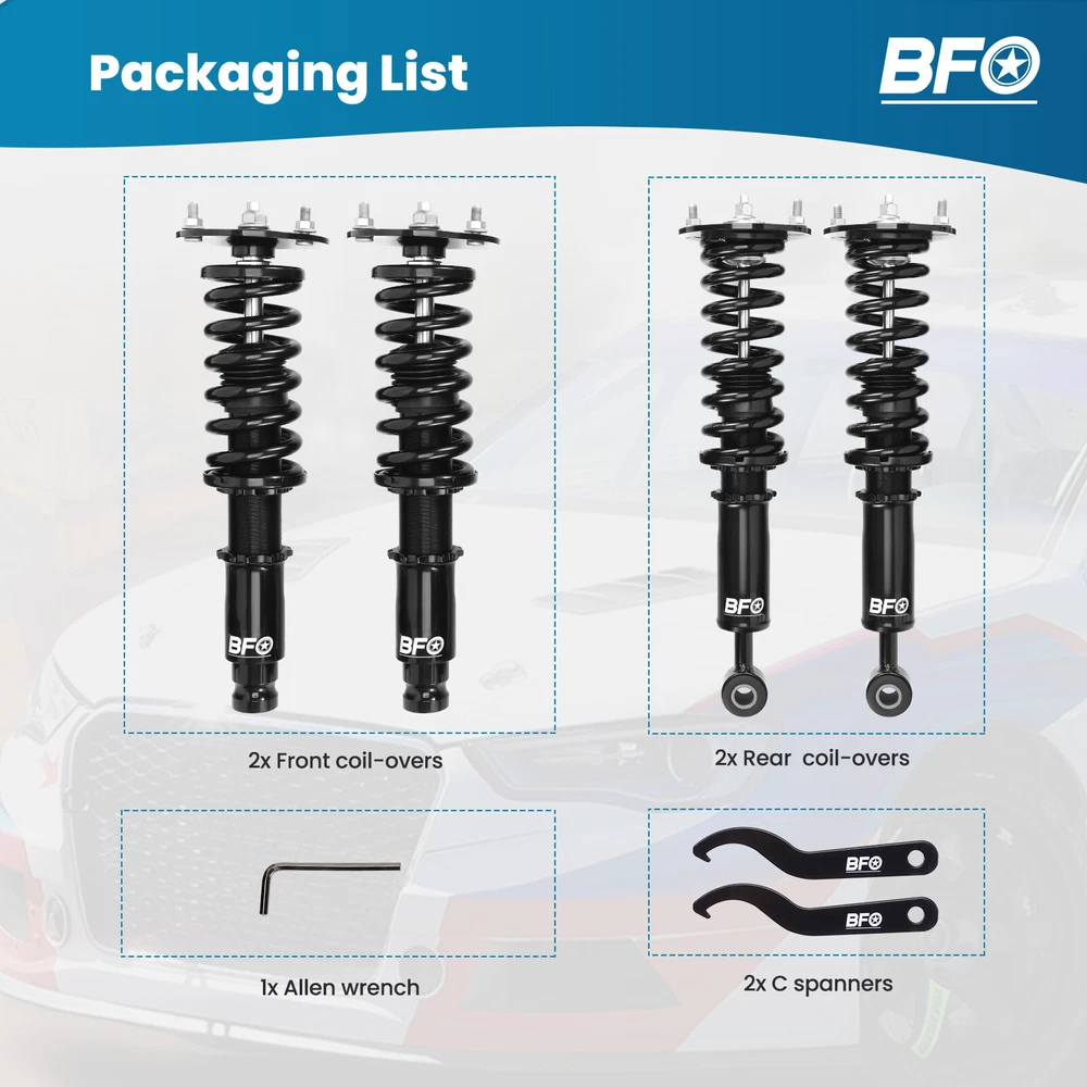 zjpss LOGO Home Contact us Promotion WHY CHOSE US Manufacturer We know our products Easy Return Quick, Simple Guaranteed Fitment Always the correct part PRODUCT DISPLAY BFO Street Coilover Suspension Lowering Kit For MITSUBISHI ECLIPSE 1995-1999 Fast Shipping International Shipping 30 Days Return Policy Secure Shopping DESCRIPTION BFO coil-overs strike the perfect balance between aesthetics, performance, and comfort. The coilovers from BFO are a street-friendly and affordable option for those not looking to explode their bank accounts for mods. Features 1. Self design structure and new manufacturing system to give more customers good coilovers without breaking your bank. 2. Full length height adjustable---lower your car 1-3 inches to get performance ride 3. Independent Ride Height and Spring Pre-load Adjustments 4. Twin-Tube System for Comfortable Ride on Streets 5. Coated finish to avoid rust 6. Heavy Duty Steel Lower Mounts 7. Simple install, Easy to adjust. Application For MITSUBISHI ECLIPSE 1995-1999 D38A CONVERTIBLE, 4CYL/TURBO For MITSUBISHI ECLIPSE 1995-1999 D33A 4CYL/TURBO For MITSUBISHI ECLIPSE 1995-1999 D32A 4CYL/TURBO For MITSUBISHI ECLIPSE 1995-1999 D31A 4CYL/NON TURBO Specifications - Front top mount: Pillow ball - Rear top mount: Rubber - Height adjustable: Yes, lowering 25-75mm depending on the vehicle models - Spring Rate Front: 12 kg/mm (672 lbs/in) - Spring Rate Rear: 9.5 kg/mm (532 lbs/in) - Spring length Front: 200 mm - Spring length Rear: 230 mm - Spring Preload advised: 7-10 mm - Color: Black body with black spring Package included 2x Front coil-overs 2x Rear coil-overs 1x Allen wrench 2x C spanners ★ 30-day Money Back & 12-Month Replacement Guarantee. Please feel free to contact us if there is any question. Height Adjustable Lowering Kit; Independent Ride Height And Spring Tension Settings; High Rigidity 55CrSi Steel Cold-bent Springs; Anodized Shock Body With Anti-Corrosion Coating; Top Pillow Ball Mount Provides More Precise Feel From Suspension And Steering; Full 1 Year Limited Warranty From Date Of Purchase. SHIPPING US Domestic Shipping Notice - All items will be dispatched within 24hrs(Mon-Fri) Our carrier collects all the parcels at 4:30am PDT, any payment paid after 5:00am PDT will be shipped the next day at 4:30am PDT. If you paid Item Shipped On Est.Delivery Time Before Apr. 1st at 4:30am Apr. 1st at 5:00am Apr. 5th - Apr. 7th After Apr. 1st at 4:30am Apr. 2nd at 5:00am Apr. 6th - Apr. 8th If our estimated delivery time and eBay’s are contradictory,please refer to the standard delivery time of ours. Estimated Delivery Time From To Service Est.Delivery Time US US UPS or Fedex Ground 3-5 Business days Outside of US DHL FedEx 4-7 Business days Tracking number will be updated in 24 hours after shipment Please provide the following shipping information for your order Full physical address Telephone number Otherwise your shipment will be deferred. We are not responsible for any shipping lost caused by wrong shipping information Shipping rate If our ebay item listing doesn't show the shipping cost to your place. Please contact us to calculate the shipping fee for you. International Shipment For international shipment, we do not cover any import taxes or duties. Import tax is charged by the government, not us. Our item price and shipping cost do not include any import tax which will be charged by the shipping company when you got the parcel. Please be noted that is not the extra shipping fee. ` NO hidden charge!!! WARRANTY Free 2 Year Warranty: All AutoModPlanet products have 2 year warranty (unless otherwise stated). In the very unlikely event that you have a problem with our product, please contact us via eBay messages. Easy Return: If you are unhappy with your purchase for any reason, you can return it to us in an un-used condition in the original packaging within 30 days of purchase and we'll give you a refund or exchange. The refund/Exchange will not include postage/eBay costs. Please note you MUST contact us to obtain a Return Authorization Number before returning any part. Any parcel without the Return Authorization Number will be rejected. If your item is faulty or was incorrect, you must contact our sales representative before returning the parcel and we will endeavour to solve the problem effectively. Video or picture is required to show the item condition before we issue the Return Authorization Number. Important notice: 1. Any returned item(s) without Return authorization number will be rejected. 2. Please return your item(s) in original packaging and ensure that all packages are securely wrapped 3. We will not accept responsibility for loss or damage of goods during transit, please ensure that the insurance cover option is taken where possible 4. Upon receipt, all products will be inspected at our discretion in 3-5 business days. Then, the updated result will be informed. If you have made a mistake on purchase and wish to cancel the order before it is dispatched please contact us by ebay massages or email as quickly as possible. Note: All parcel will be collected by carrier at 8:00am on Monday to Friday. FAQ Will this fit my car? We have used the eBay compatibility list as a guide for buyers to use, but the eBay data system is not accurate and incomplete sometimes. Please make sure you have read through the whole listing and paid attention to “note” and “notice”. If there is any uncertain, please use the eBay message to check with our sales first. How much does delivery cost and how long will it take? You can check the delivery cost in the listing “Shipping and payments” section by selecting your country and entering your zip code. If it is not specified, please provide us your shipping address and zip code via eBay message. For US domestic shipping to 48 states, the delivery time is around 3-5 business days. The international shipment delivery time is around 4-7 business days. What payment methods do you accept? We currently only acc