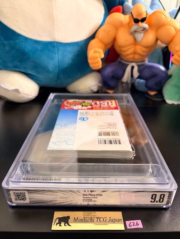 BGS 9.8 ONE PIECE Vol. 104 1st Printing Japanese Manga JUMP Graded Comic w/ Obi Item Description ๐ Item Specifics Title: ONE PIECE Vol. 104 Edition: 1st Printing (First Edition) Grading Company: BGS (Beckett Grading Services) Overall Grade: 9.8 (MINT) Dust Jacket Grade: 9.0 Language: Japanese Includes: Original Obi (Wraparound band) ๐ Item Condition & Details This is a highly collectible first printing of ONE PIECE Volume 104, professionally graded by BGS . Overall Grade 9.8 : A nearly perfect copy, ideal for serious high-end collectors. Dust Jacket 9.0 : The jacket is in beautiful condition with a very high sub-grade. Obi Included : This copy comes with the original Japanese "Obi" (advertising band), which is essential for preserving the item's long-term value. The slab is in pristine condition and will be shipped in a protective sleeve to prevent scratches. โ๏ธ Fast Shipping from Texas, USA This item is shipped directly from our warehouse in Texas, USA . Handling Time: Shipped within 3 business days after payment is confirmed. ๐บ๐ธ For U.S. Buyers: NO CUSTOMS DUTIES: Since this ships domestically within the U.S., you will NOT be charged any import taxes or customs fees. FAST & SECURE: Avoid long international shipping times and risk of damage during overseas transit. ๐ For International Buyers: Shipping is handled via eBay International Shipping. Any customs fees are the buyer's responsibility. ๐ค Why Buy from monkichi-tcg? 100% Authentic: We only sell original Japanese 1st edition manga and authentic graded items. Professional Packaging: We understand the value of graded slabs. This item will be double-boxed and heavily padded to ensure it arrives in the exact condition described. Trusted Seller: We are dedicated to professional service and customer satisfaction.