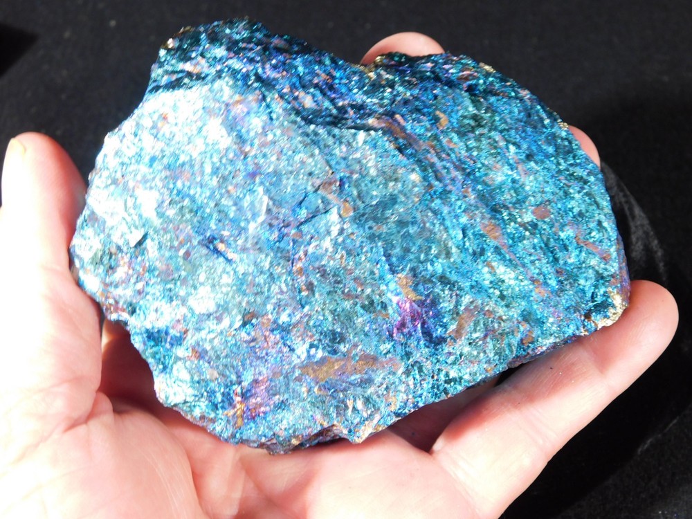 Hello, here is a Big! natural and very colorful Bornite, Chalcopyrite, Peacock Ore or Peacock copper with IRIDESCENT Blue, Copper, Teal, Green, Gold, Silver and or Purple colors from Mexico! Bornite tarnishes to various iridescent shades of green, blue to purple in places. Its striking iridescence gives it the nickname peacock copper or peacock ore...neat! The overall piece measures a Nice! 4 3/8" or 11.0cm at its biggest or from opposing side to side. INTERNATIONAL BUYERS PLEASE NOTE : Import duties and taxes are not included in the price of the item or the shipping charges. These are the buyers responsibility. If you are concerned about them, please check with your country's customs office before purchasing. RETURN POLICY We guarantee you will be satisfied with your item or we'll refund your purchase price, less shipping charge, upon safe return of the item in original condition within 14 days. Prior to returning the item, please contact within 48 hours of receiving item. Buyer is responsible for all return shipping charges.