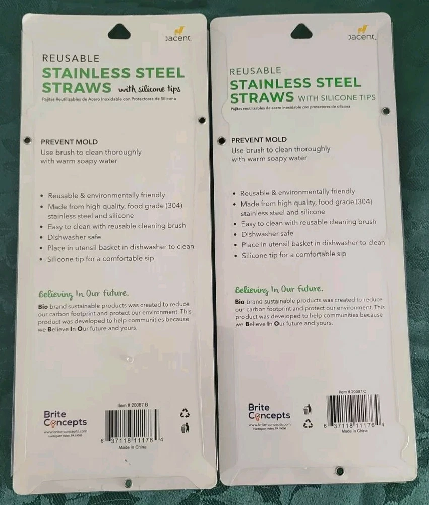 Sip your drinks in style with the BIOSMART Reusable Stainless Steel Straw Set. This set includes six drinking straws made of durable stainless steel with silicone tips for a comfortable grip. The set also comes with one cleaning brush to keep your straws clean and fresh. With a solid pattern and multicolor design, these straws are perfect for any kitchen or dining set. They are reusable, making them a great alternative to plastic straws, and their stainless steel handles ensure they will last for years to come. Upgrade your drinking experience with the BIOSMART Reusable Stainless Steel Straw Set today! This is a 2 set package sale.