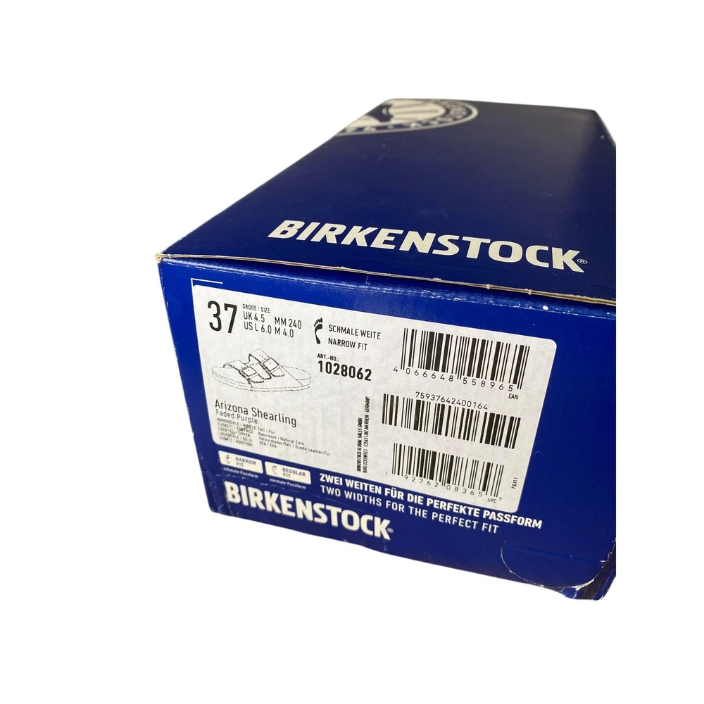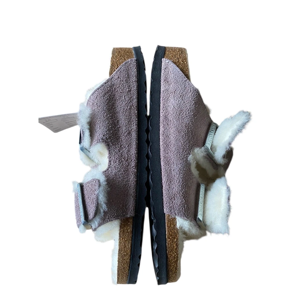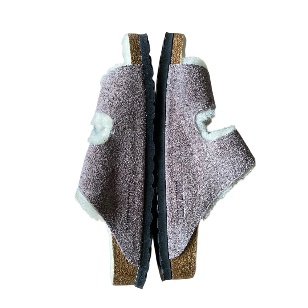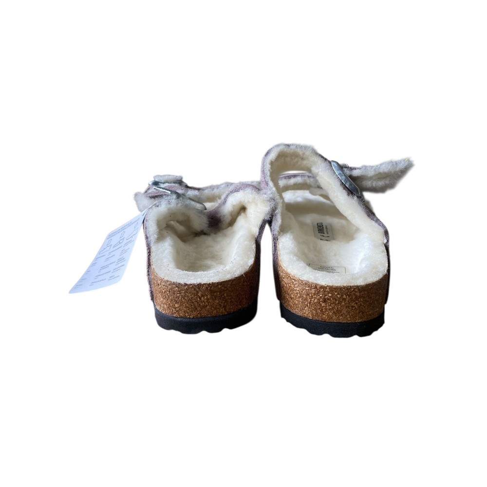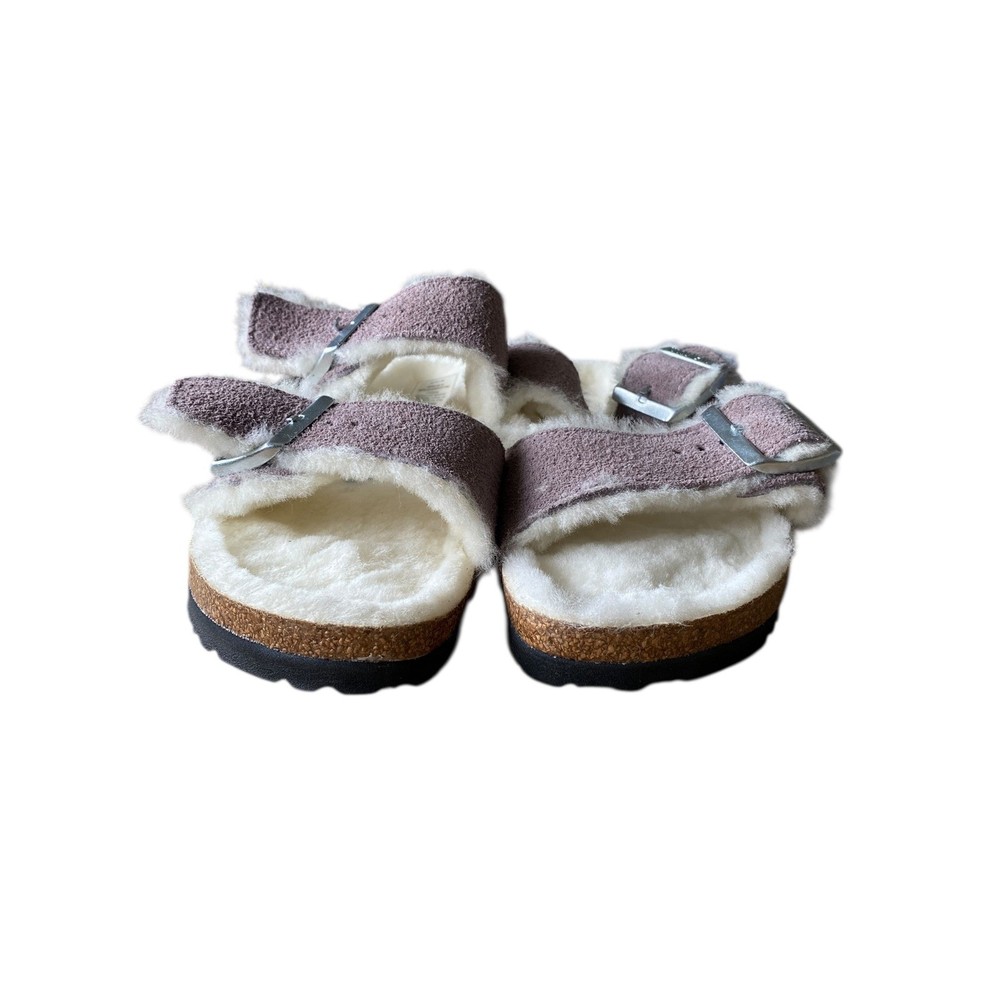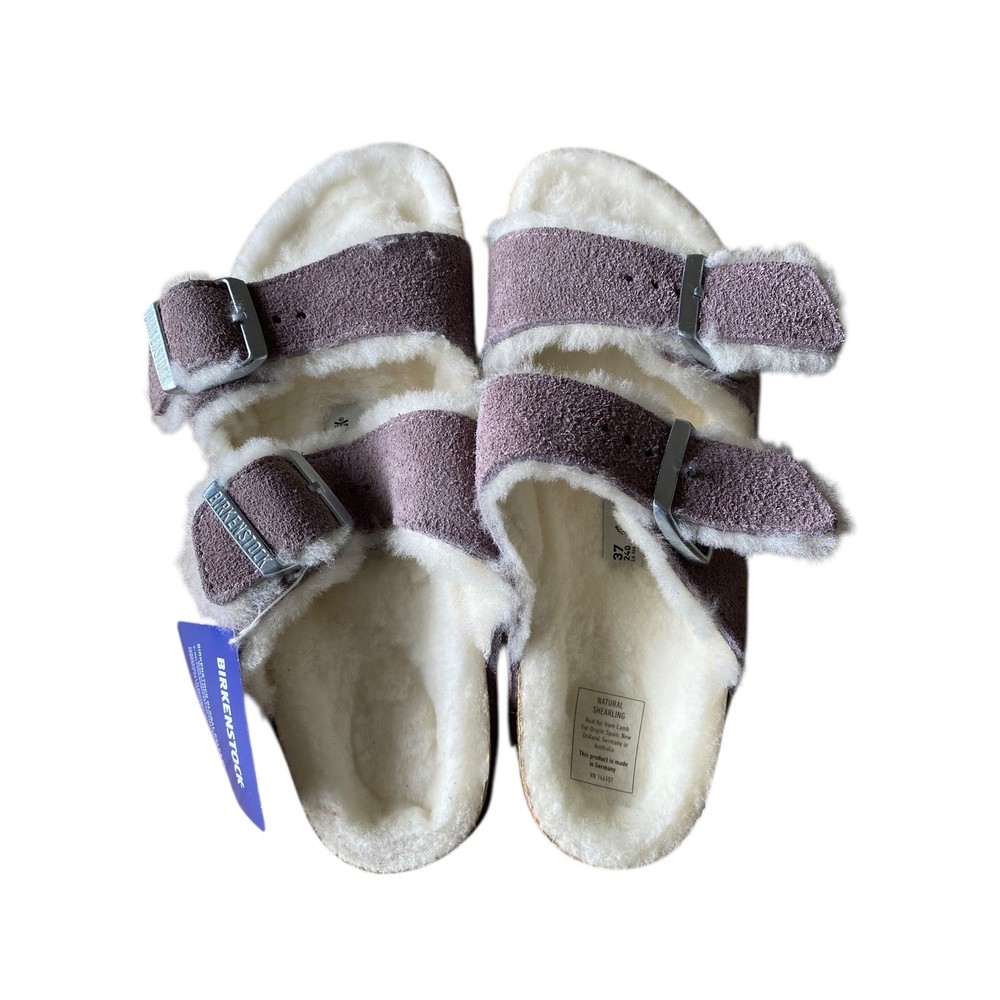UK Shoe Size: 4.5 Style: Shearling Style Vintage: No Type: Slipper Handmade: No Insole Material: Cork Department: Unisex Adults Heel Height: Flat (Under 1 in) Season: Winter Color: Purple Personalize: No Occasion: Casual Toe Shape: Open Toe Upper Material: Suede Brand: Birkenstock Customized: No US Shoe Size: 6.0 Pattern: Solid Product Line: Birkenstock Arizona EU Shoe Size: 37 Model: Arizona Lining Material: Fur Country of Origin: Germany Accents: Buckle, Fur Trim, Logo Outsole Material: Cork Closure: Buckle Features: Buckle, Padded, Insulated, Adjustable Strap, Comfort, Lined Fabric Type: Suede AU Shoe Size: 6 Shoe Width: Narrow Fit