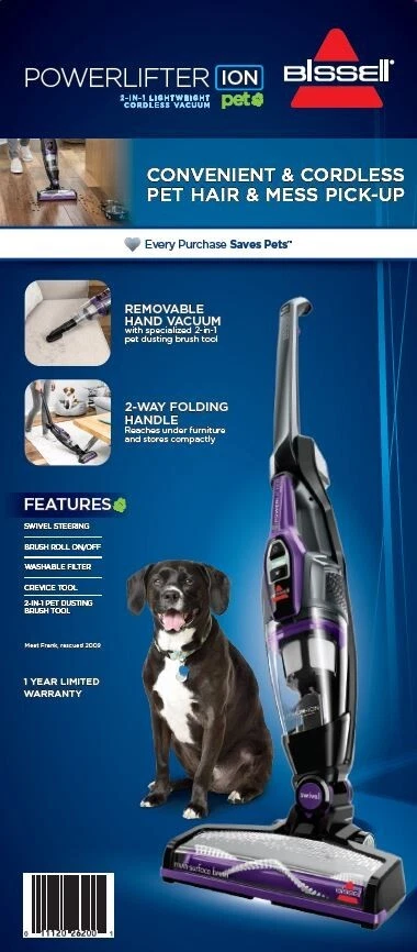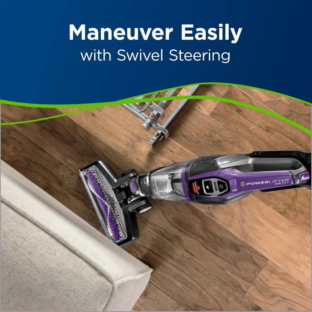 Product details The BISSELL Power Lifter Ion Pet Hard Floor Stick Vacuum 2482 combines convenient and innovative design with powerful cleaning capabilities. It features a lightweight and durable construction partnered with a long-lasting lithium-ion battery to provide a convenient vacuum that is not confined by a cord, so, it goes anywhere you go. The BISSELL stick vacuum 2-in-1 design features a removable hand vacuum and includes swivel steering to make vacuuming around furniture a breeze. It also features a two-way folding handle that adjusts to clean far under furniture edges. This innovative stick vacuum cleaner keeps the brush roll on or off switch right at your fingers, so you can seamlessly move from hard surfaces to low-pile carpets with minimal effort. The BISSELL PowerLifter Ion Pet Hard Floor Stick Vacuum 2482 has been specially developed to handle pet dander and shedding from furry friends. Powerful cordless cleaning Swivel steering provides easy maneuverability BISSELL stick vacuum is a 2-in-1 cleaning machine Construction includes a detachable hand vacuum Collapsible design provides compact storage 2-way folding handle helps reach under furniture with eas Powerful, multi-surface brush picks up dirt on all types of flooring Powered by a lithium-ion battery Bagless vacuum system allows for easy clean-up Permanent filter is housed in the dirt-catching canister Lightweight construction provides a versatile cleaning solution Every Purchase Saves Pets! BISSELL proudly supports BISSELL Pet Foundation and its mission to help save homeless pets.