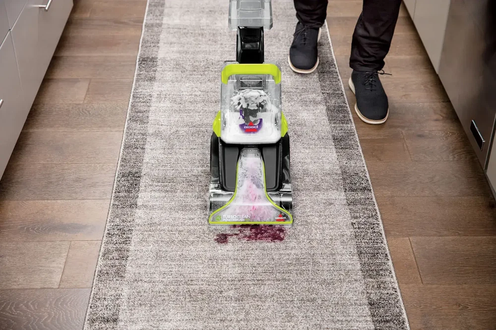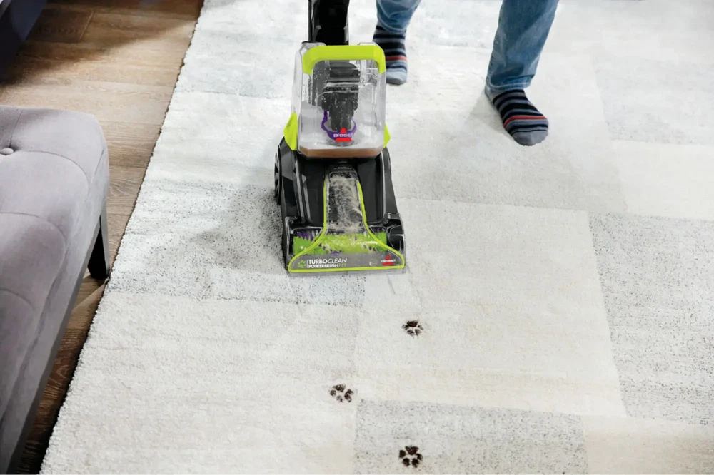 Don’t let the sleek and lightweight design of the BISSELL TurboClean PowerBrush Pet fool you — this machine is tough on pet messes that happen on carpet and area rugs. The less than 13-pound machine packs a powerful cleaning punch. The four-row DeepReach PowerBrush Roll works with BISSELL formula to remove pet messes like dog and cat urine, vomit and mud. It's easy to quickly grab if Fido has an accident on the area rug or tracks mud in from the backyard. This machine has a two-tank system, meaning clean water and formula are kept in one tank, while dirty water is pulled into a separate tank, so you never put dirty water back on your carpet or area rugs. The TurboClean PowerBrush Pet is lightweight and powerful, so it's great for smaller living spaces that may have limited storage. When you're done using it, features like the easy-to-remove water tanks and a removable nozzle make maintenance simple. And this product doesn't just easily clean up after pets, it helps save them, too! BISSELL proudly supports BISSELL Pet Foundation and its mission to help save homeless pets. When you buy a BISSELL product, you help save pets, too. We’re proud to design products that help make pet messes, odors and pet homelessness disappear. Features Lightweight & Powerful Tackle tough spills and messes on carpet and area rugs or clean an entire room of carpet. DeepReach PowerBrush Roll Scrub, lift and remove dirt, complimenting regular vacuuming, so carpet and rugs get their best clean. Two-Tank Technology Keep clean water and formula in one tank and dirty water in another, so you're always cleaning with a mix of fresh water and formula, never with dirty water Convenient Cleaning This lightweight machine stores easily in smaller spaces, so it's easy to grab the second stains strike Powerful Suction Tackle tough messes and get your best clean by pairing the TurboClean PowerBrush Pet with a BISSELL formula