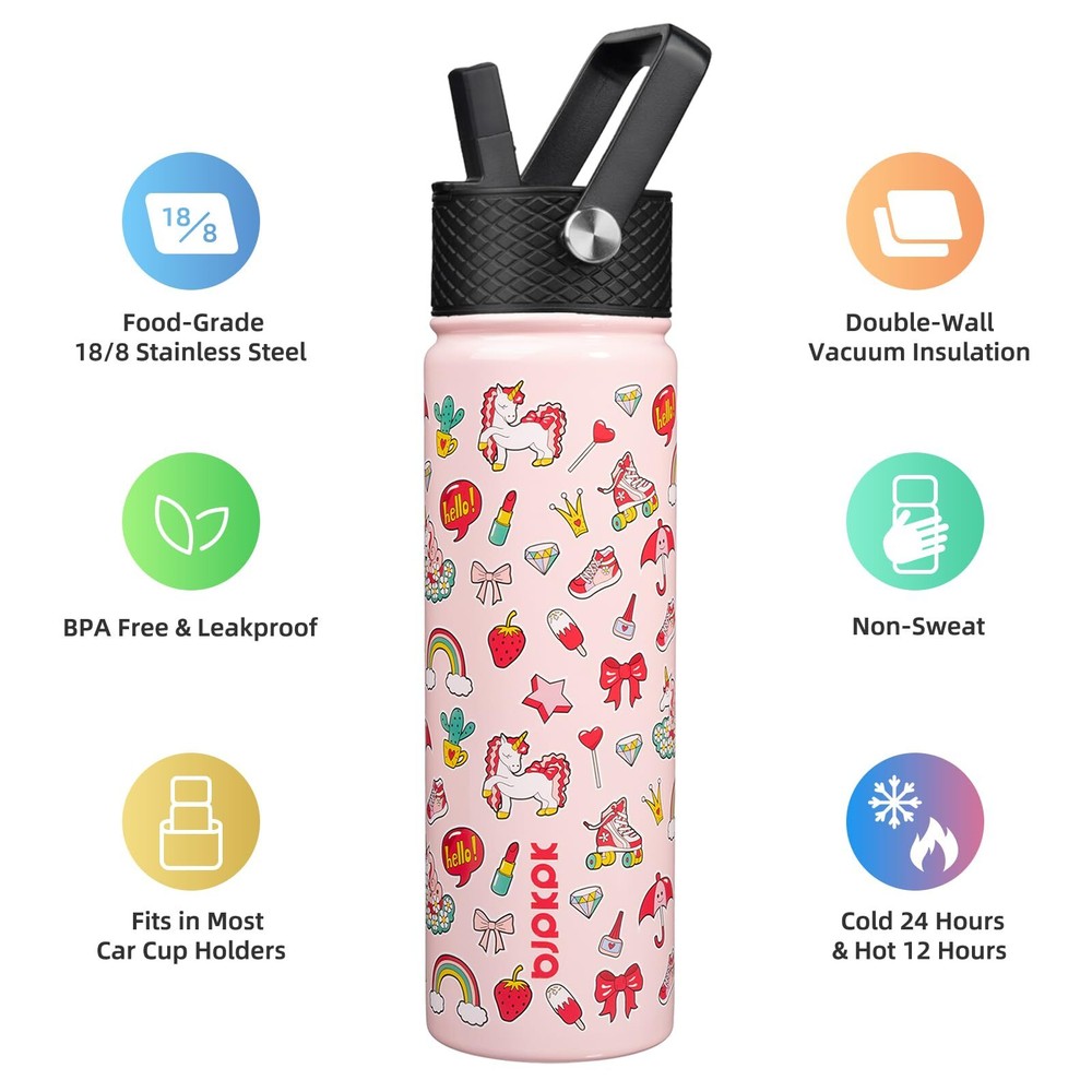 BJPKPK Insulated Water Bottle with Straw Lid, 22 oz Stainless Steel Metal Water Bottles, Reusable Leak Proof BPA Free Water Bottles, Cups, Thermos, Unicorn VACUUM INSULATION WATER BOTTLE: BJPKPK insulated water bottle with straw lid is double-walled and vacuum sealed, which offers a never-ending chill for your favorite drinks - keeping them ice-cold for 24 hours and steaming-hot for 12 hours - so you can enjoy them at the perfect temperature for longer LEAK PROOF & PORTABLE: Sturdy handle and flip-up straw lid are suitable for you to carry and use. With a leak-proof silicone loop inside the straw lid, it prevents splashing and dripping. The leakproof and sweat-resistant feature of our water bottle makes it suitable for outdoor activities and sports. Please make sure the nozzle is in the closed position for 100% leakproof FOOD-GRADE MATERIALS: BJPKPK metal water bottles are made of 18/8 stainless steel with a BPA-free lid that ensures no flavor transfer, it preserves the authentic taste of your beverages. It’s safe for your daily water drinking.The long-lasting powder coating is non-toxic and slip-free, also gives this cute water bottles a vibrant look EASY TO CLEAN AND USE: Wide Mouth is convenient for ice-filling and cleaning. Comes with 2 straws and 1 straw brush so you can switch out and keep this thermos water bottle clean with ease! Multiple cute patterns add a touch of fun and personality, making hydration enjoyable REUSABLE WATER BOTTLE: Get more out of your outdoor adventures with our reusable water bottle that can be refilled multiple times, reducing single-use plastic waste,developing a sustainable habits while enjoying your favorite drinks BJPKPK Insulated Water Bottle with Straw Lid, 22 oz Stainless Steel Metal Water Bottles, Reusable Leak Proof BPA Free Water Bottles, Cups, Thermos, Unicorn Shipping We offer FREE shipping on all orders! We use a selection of shipping services such as UPS, FedEx, USPS etc. We only ship to the lower 48 states, no APO/FPO addresses or PO Boxes allowed. Local pickups and combined shipping options are not provided at this time. Return You can return a product for up to 30 days from the date you purchased it. Any product you return must be in the same condition you received it and in the original packaging. Please keep the receipt. Payment We accept payment by any of the following methods: PayPal Please pay as soon as possible after winning an auction, as that will allow us to post your item to you sooner! Feedback Customer satisfaction is very important to us. If you have any problem with your order, please contact us and we will do our best to make you satisfied. Contact Us If you have any queries, please contact us via ebay. We usually respond within 24 hours on weekdays. Please visit our eBay store to check out other items for sale! Thank you for shopping at our store.