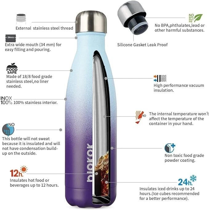 BJPKPK Insulated Water Bottles -17oz/500ml -Stainless Steel Water bottles, Sports water bottles Keep cold for 24 Hours and hot for 12 Hours,BPA Free water bottles,Ocean Dream Check out our other listings for combined shipping and thanks for looking! **Veteran Preference Female Owned Business**
